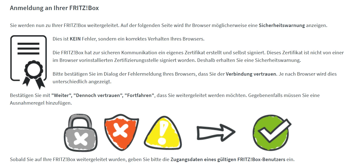 @jhenning Was passiert nun wenn Du auf den Link „Internetzugriff auf die Fritzbox….“ klickst. Kommst Du nach einigen Hinweis Screens zum Webmenü der Fritzbox?