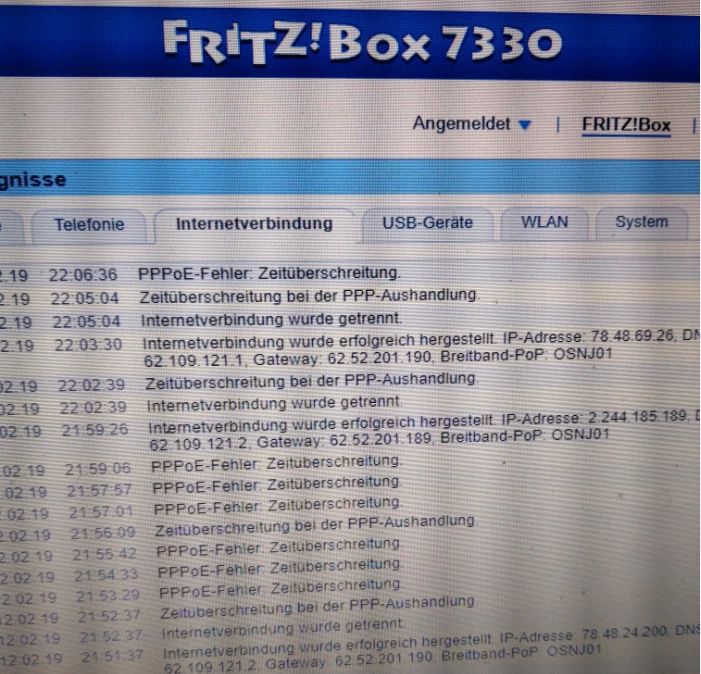 FritzBox 7412 - PPPoE-Fehler: Zeitüberschreitung.