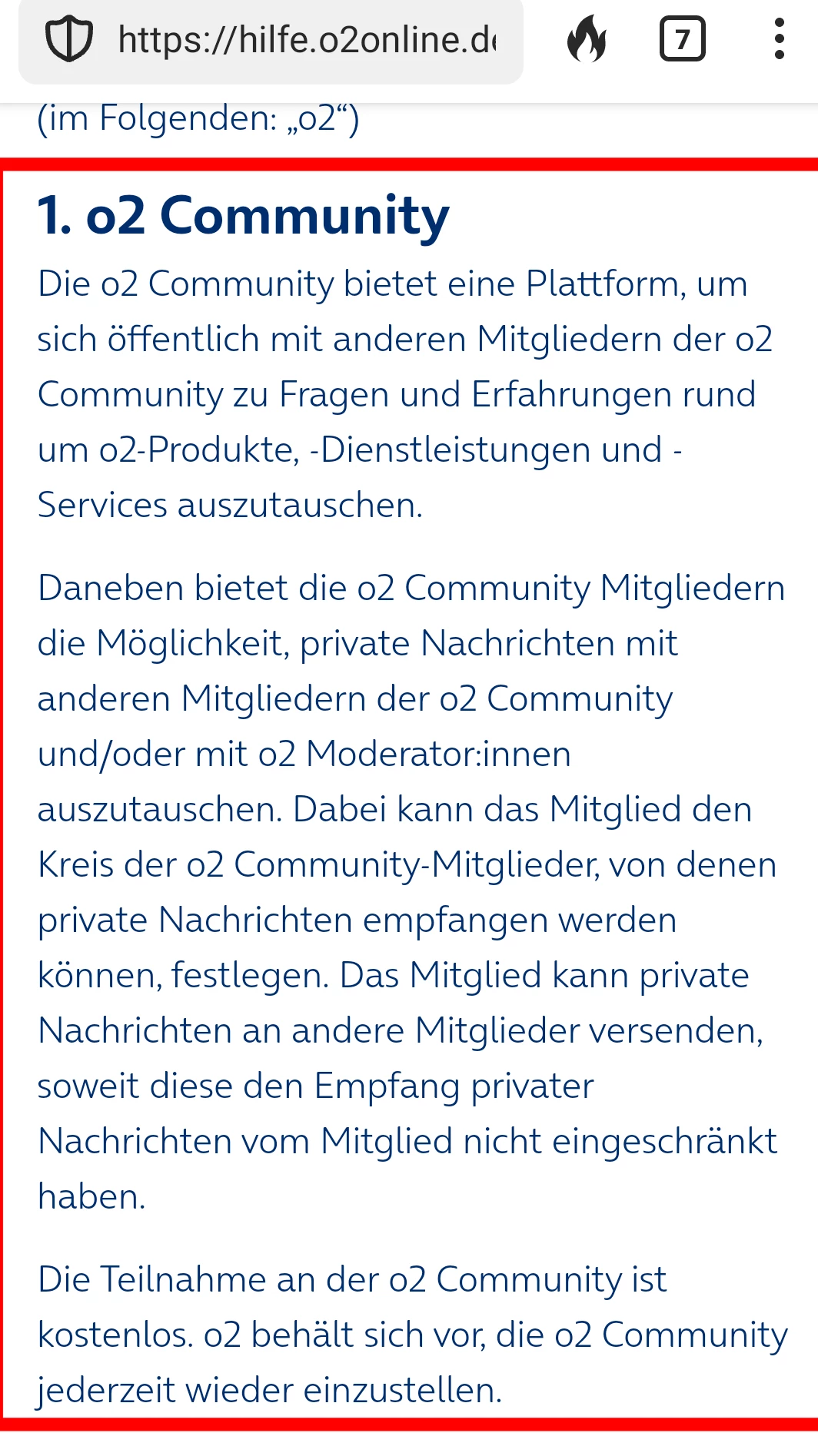 o2 selbst sieht die Community in erster Linie als "Kunden helfen Kunden"-Forum und deshalb findet sich in den "Allgemeinen Nutzungsbedingungen" der Community