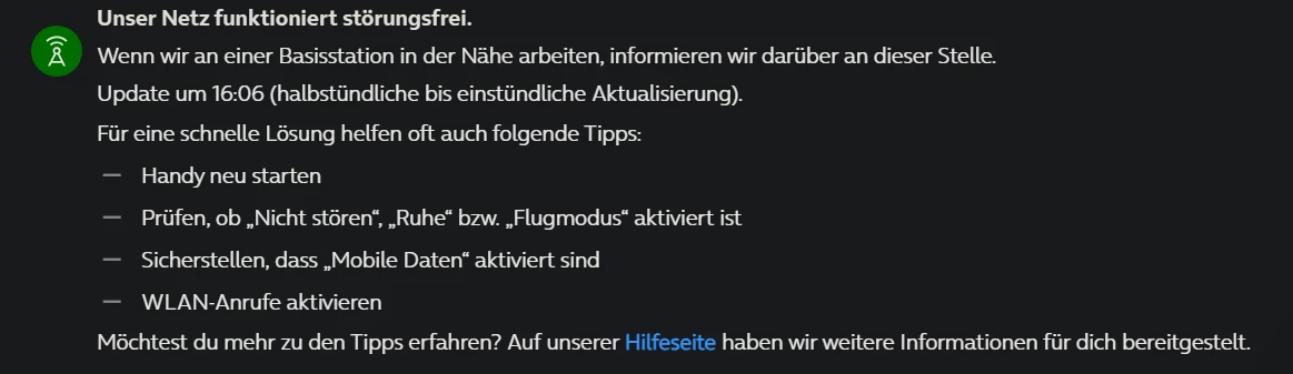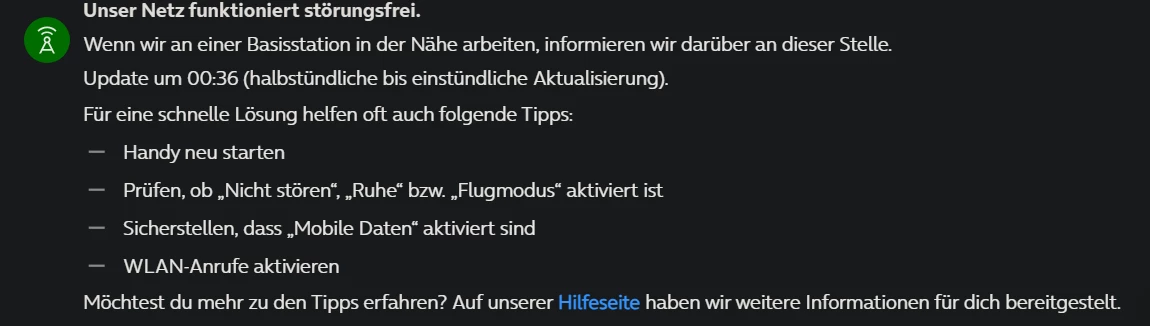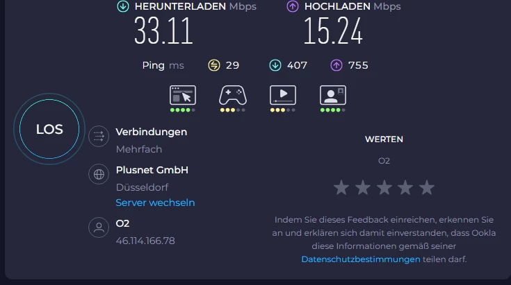 Störungsfrei aber tagsüber ist das Netz an der Grenze zur Überlast. Geht auch manchmal auf 17 down / 18 up. Eben eine Krücke. Schulnote 4-.