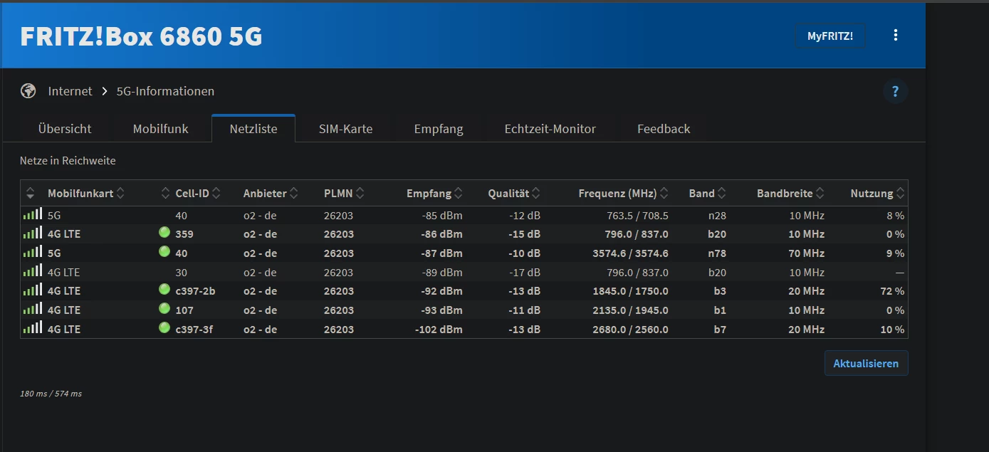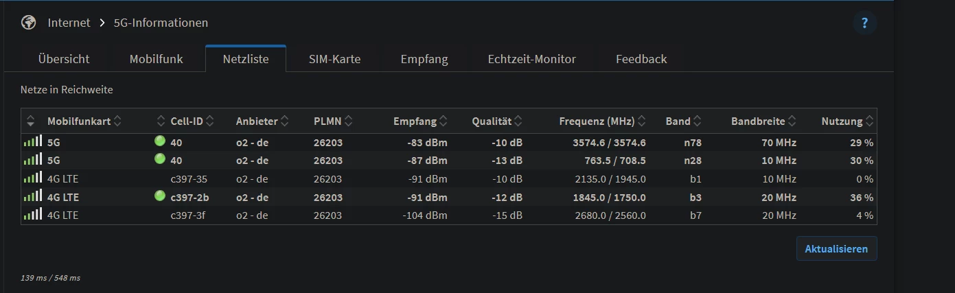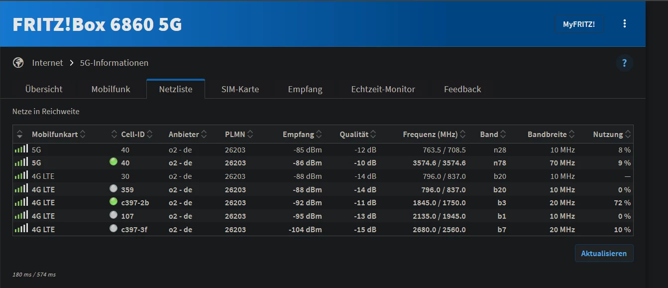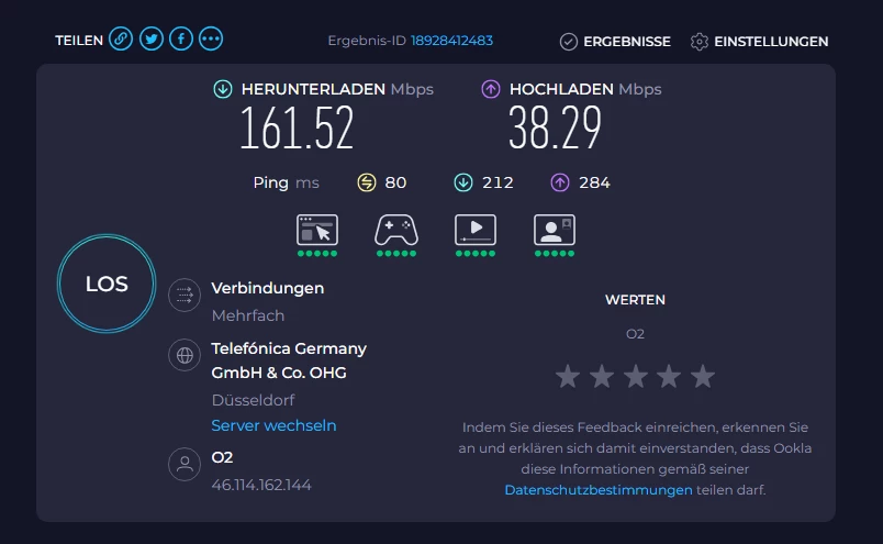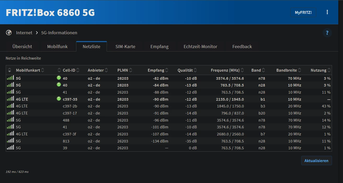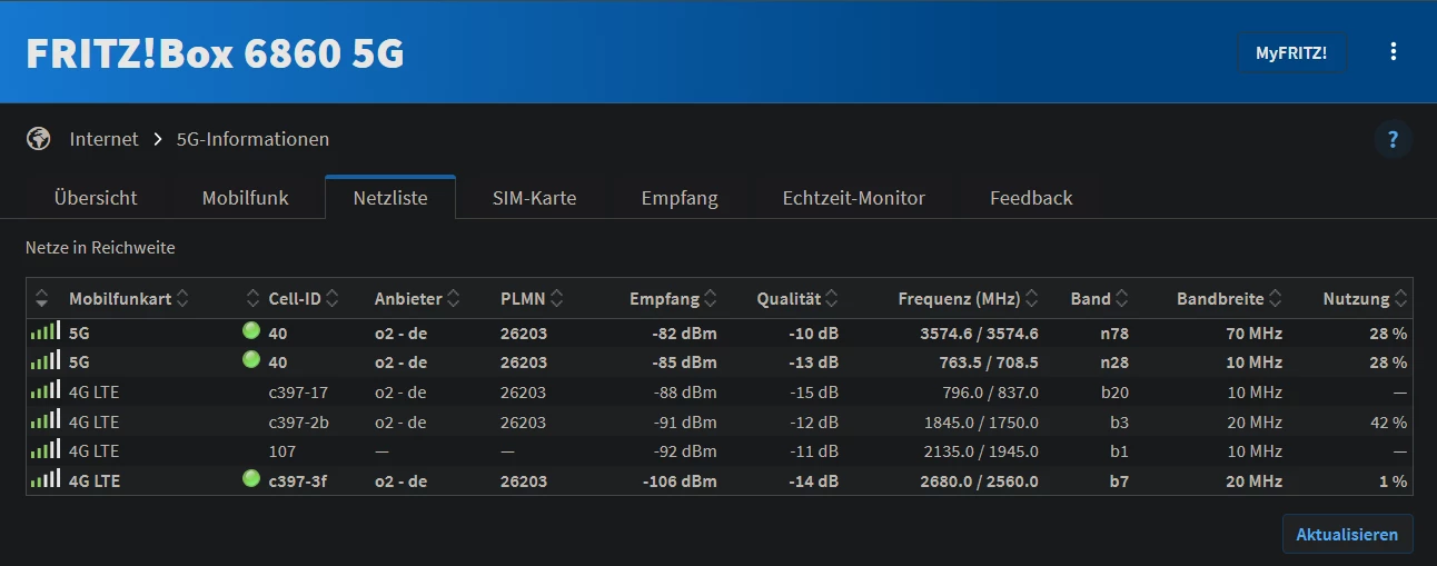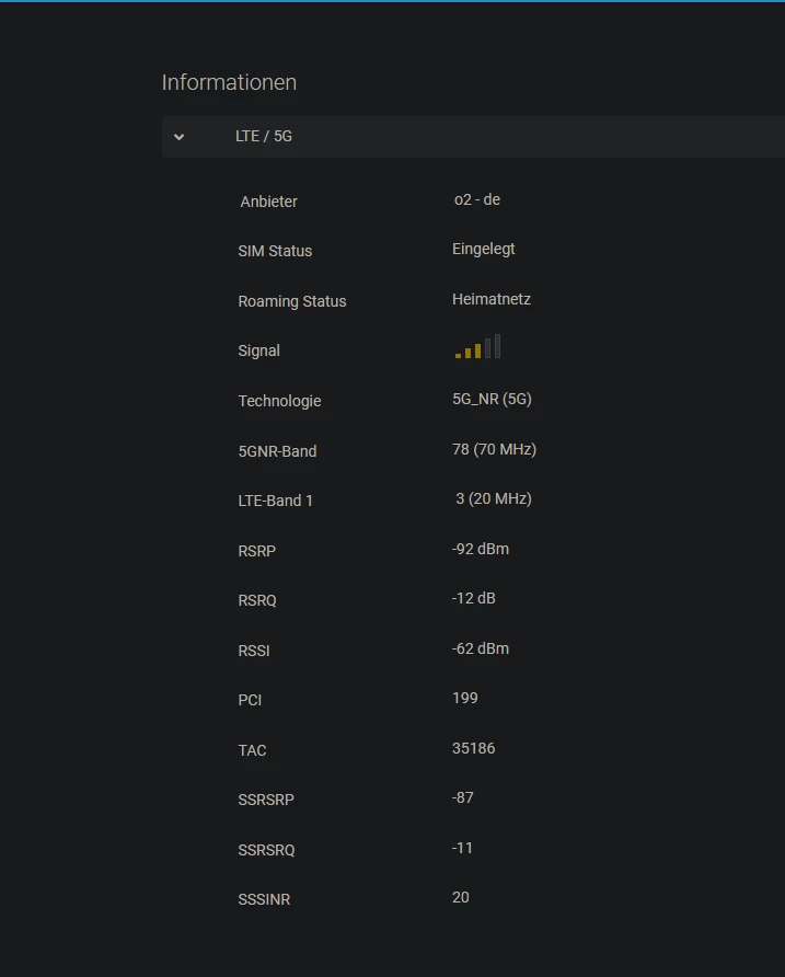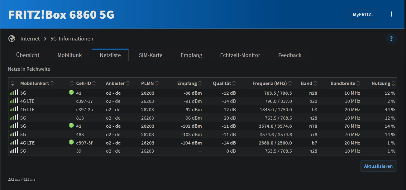 Im Moment noch langsam durch laufenden Umbau einer drei 5G Zellen in meiner Nähe.