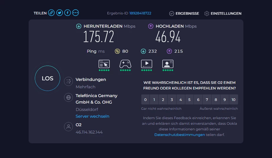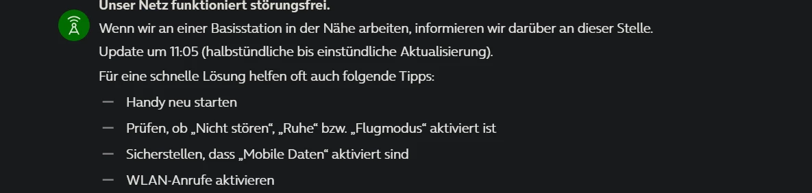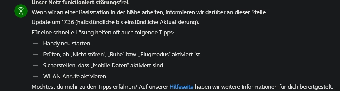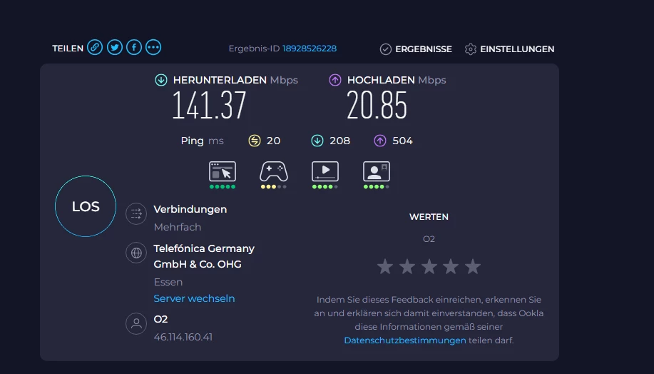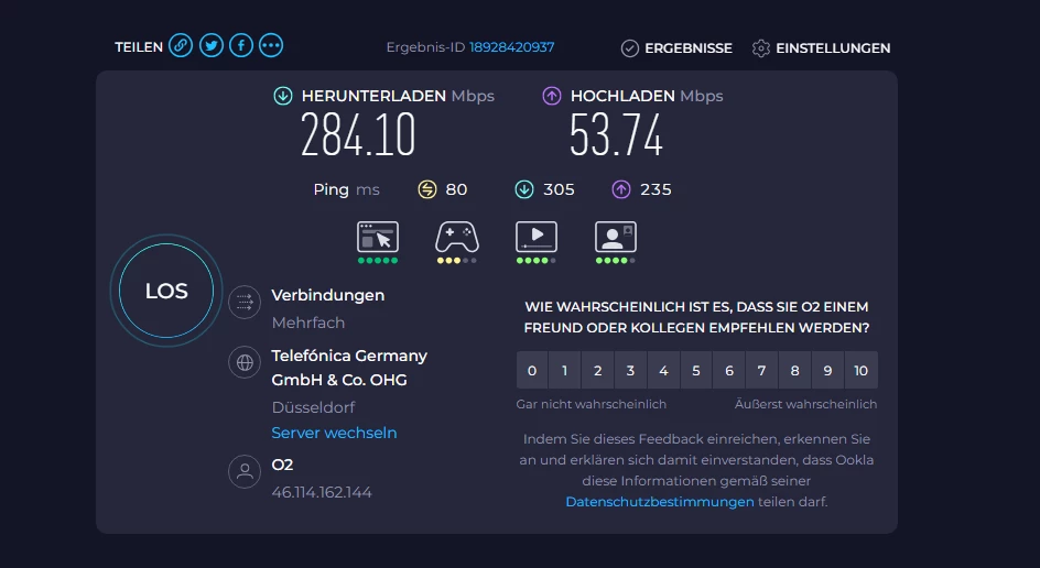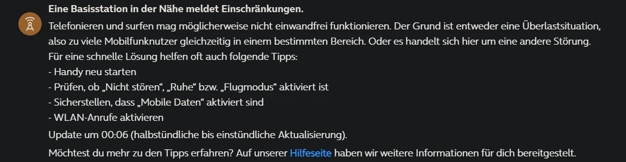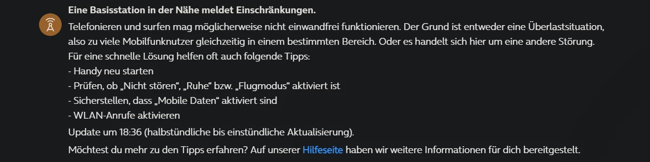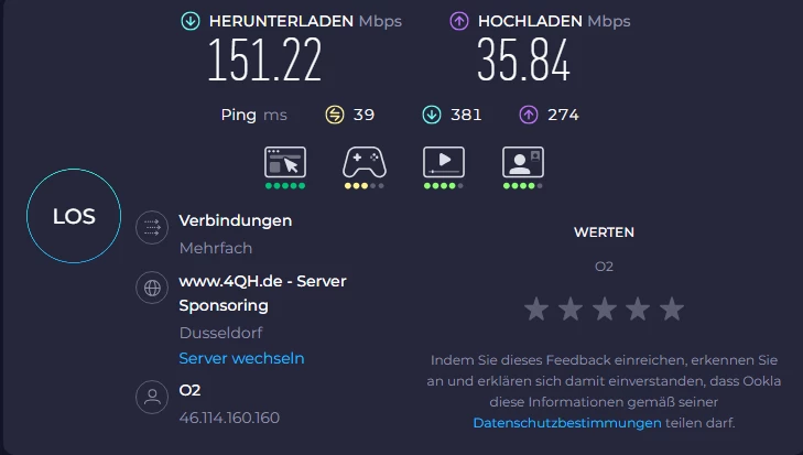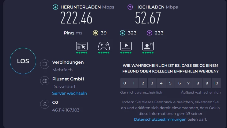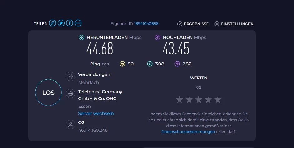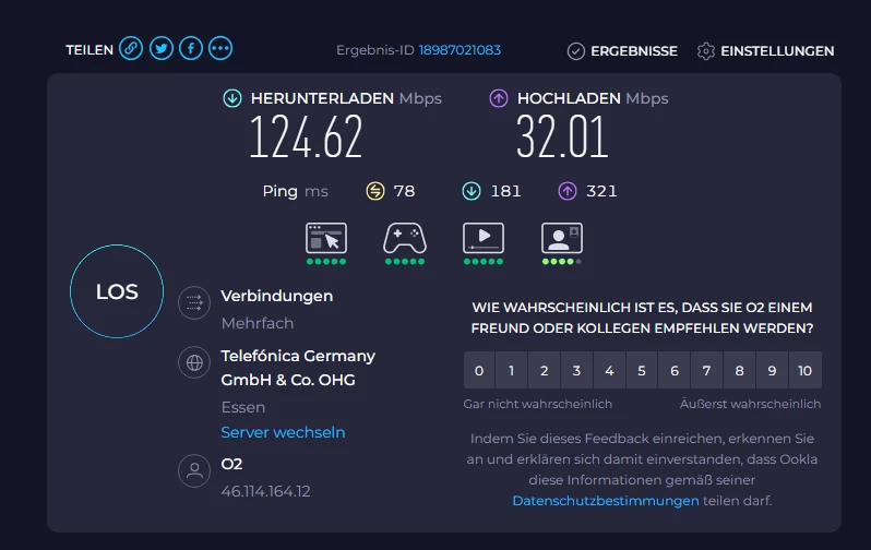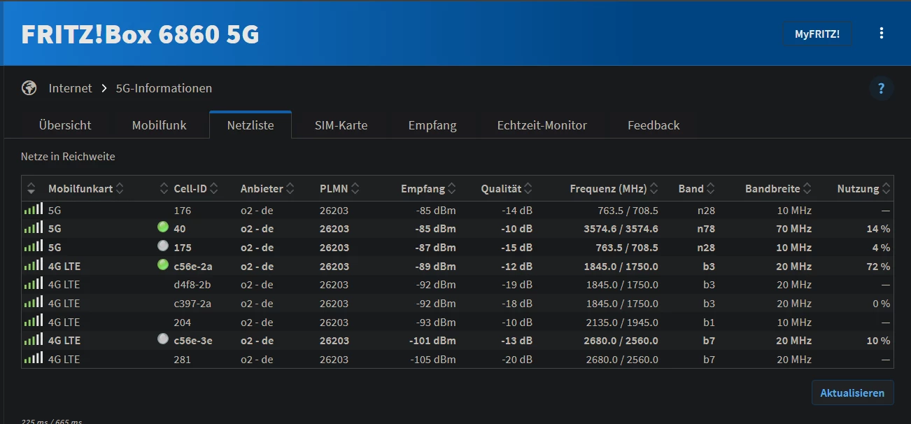 Im Moment noch langsam durch laufenden Umbau einer drei 5G Zellen in meiner Nähe.