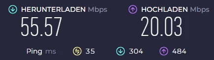 Der Speedtest war auch ganz in Ordnung dafür, dass es folgende Konstellation war: Mobilfunk → Altes Handy → USB-Tethering an die FritzBox → LAN-Kabel zu zweiter FritzBox → LAN-Kabel zum PC.