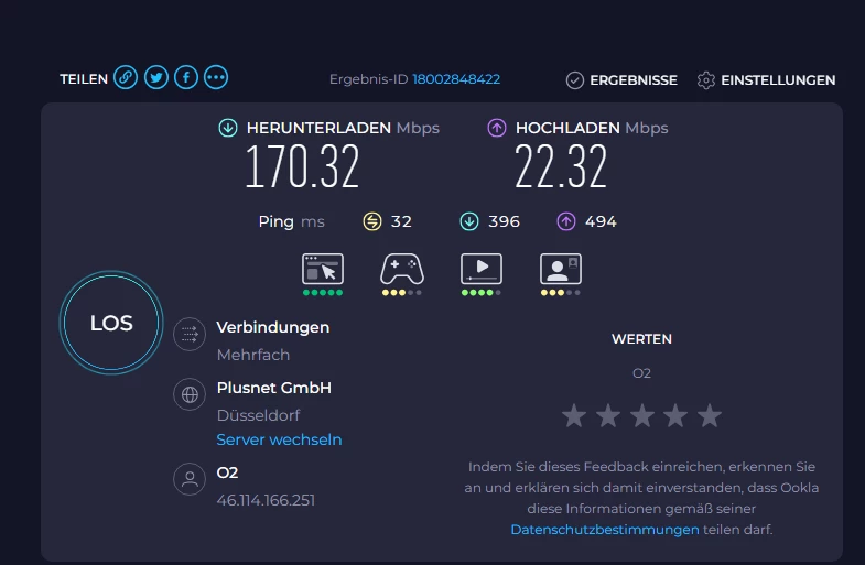 Fazit: man kann über o2 bei dem einen oder anderen meckern. Aber: wohnt man in der richtigen Ecke und ist dann noch bereit die richtige Hardware auch beim mobilen Router zu verwenden sieht man wieviel Potential im Netz ist. Und ich wohne mittendrin im Kern wo immer hohe Auslastung ist.