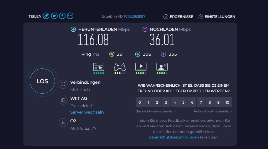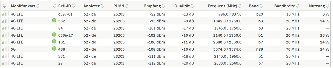 direkt bei mir Outdoor über Handy mit freier Sicht auf 5G SA n78 zur Mittagszeit. o2 hat schon wirklich Power. Es kommt in vielen Dingen auf das verwendete Endgerät und die gwählten Einstellungen an. 😊