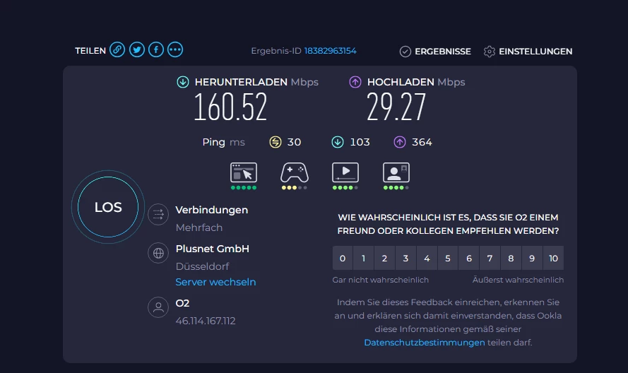 Auf der Funkzelle hängt irgendwie ein gesamter Stadtteil drauf. 300m von mir. Und das war jetzt mitten am Tag. Und wenn du auf 300/50 gebremst wirst kommt da eben nicht mehr. 😉