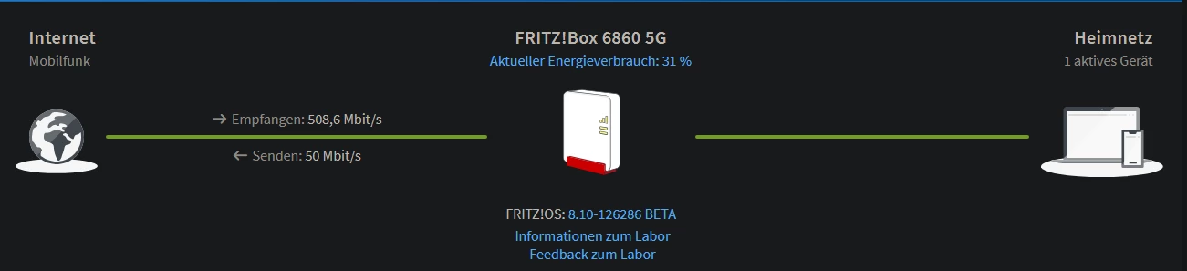 FRITZ!Box 6860 5G mit einem Labor-Update