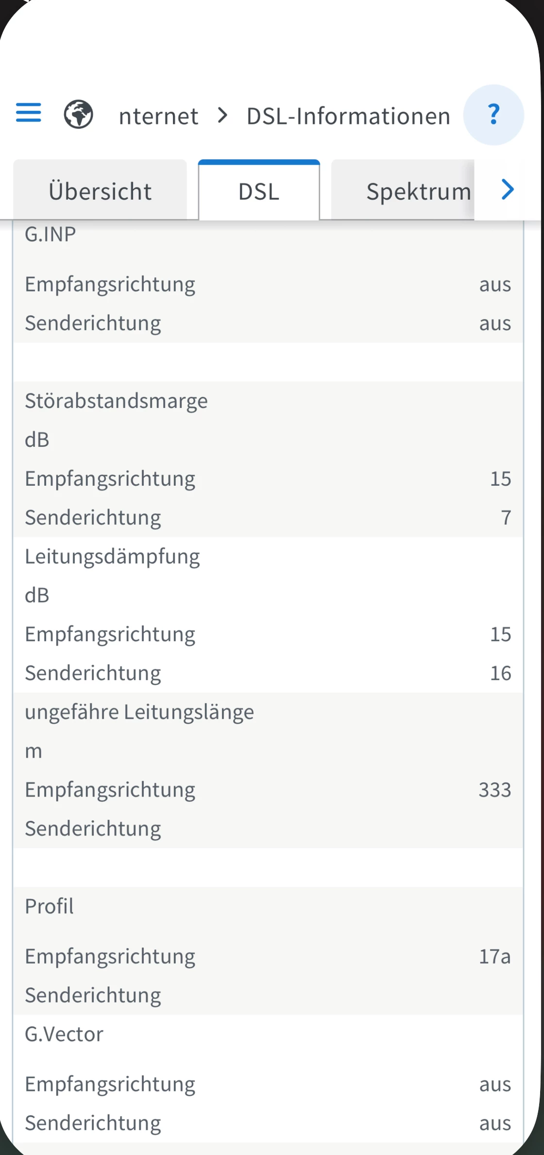 ich habe festgestellt, dass mein Anschluss trotz einer VDSL 50.000-Leitung mit deaktiviertem G.Vector betrieben wird. Soweit mir bekannt ist, sollte G.Vector aktiv sein, um eine optimale Performance zu gewährleisten.