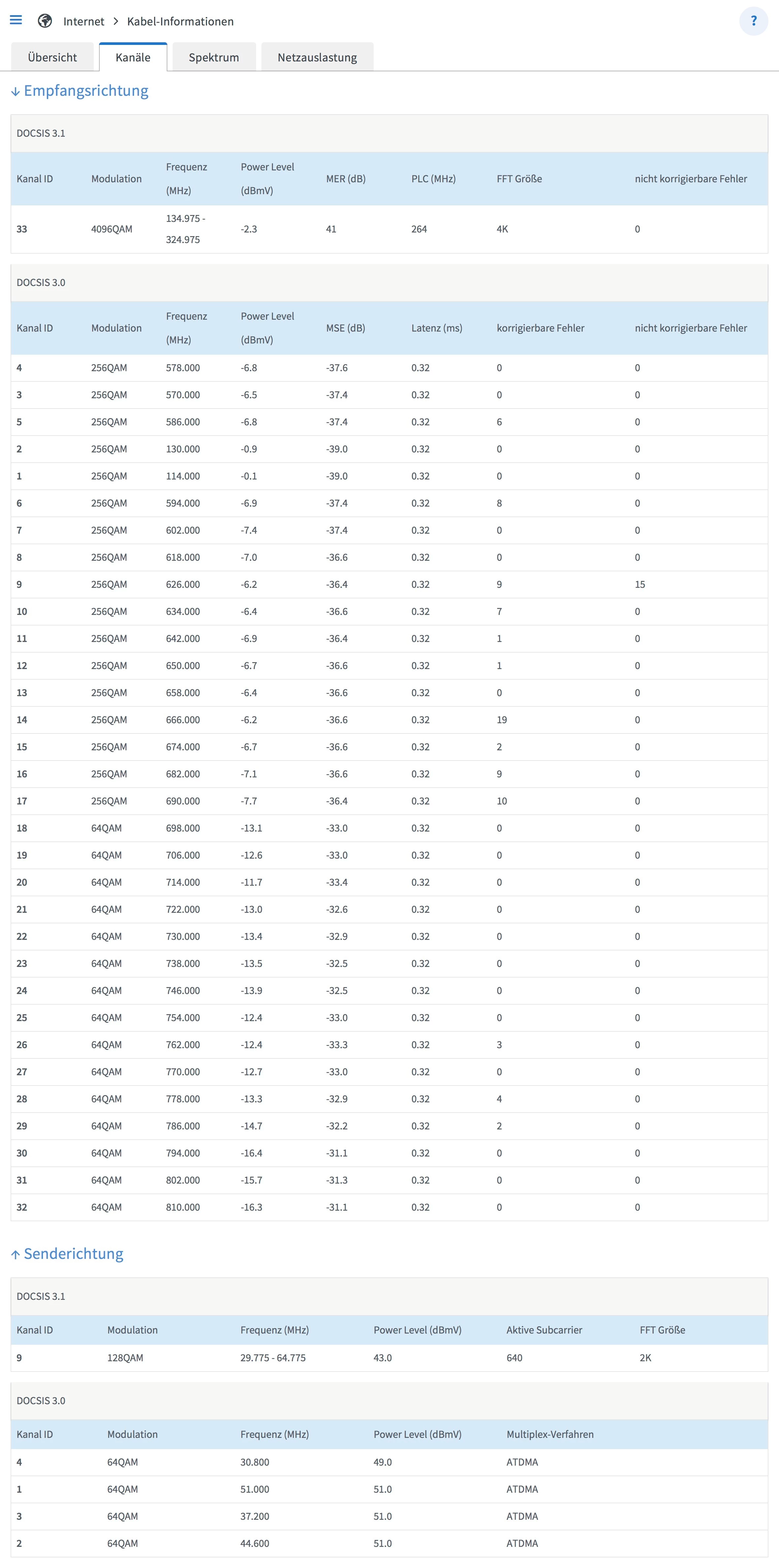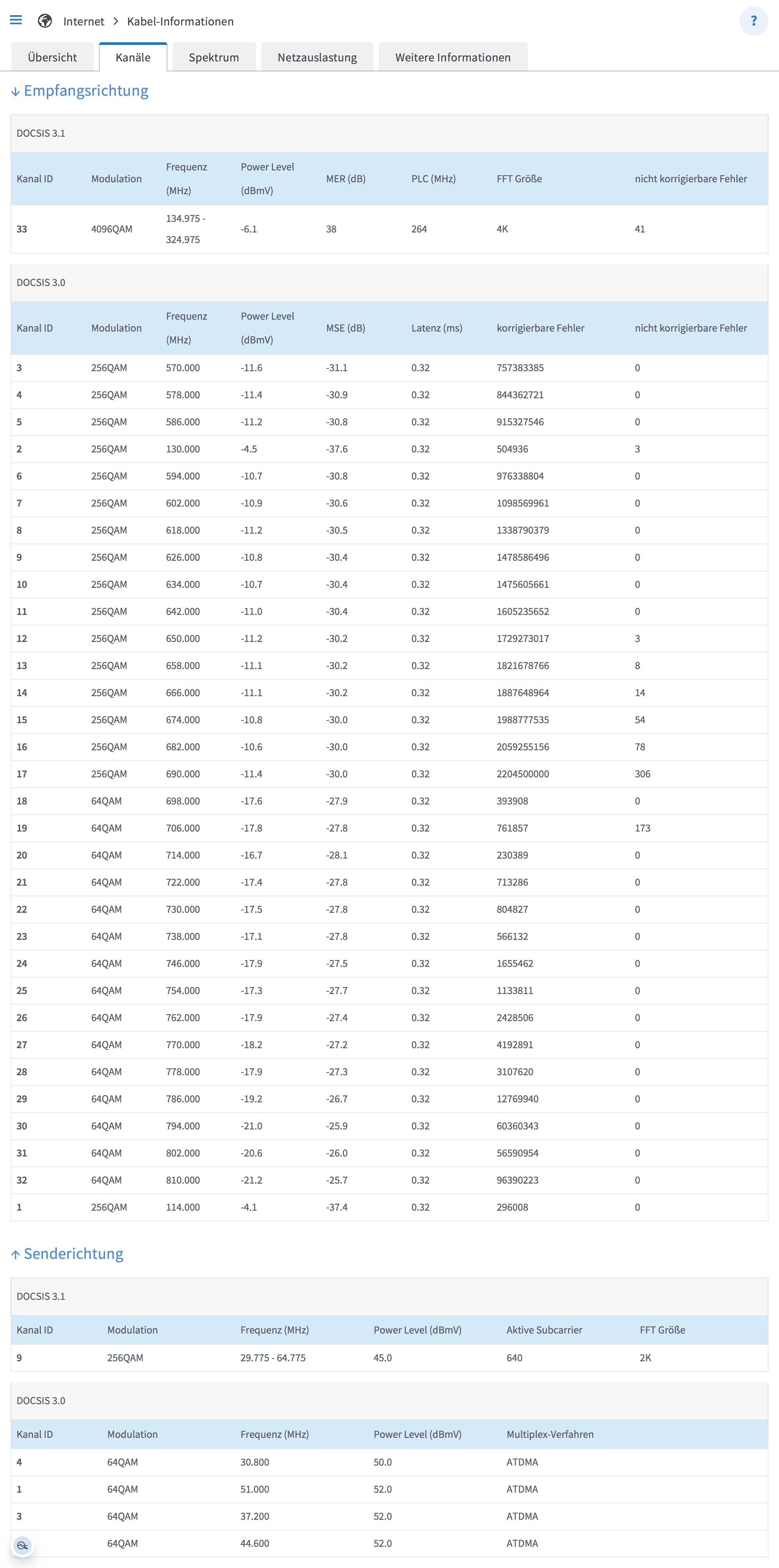 Leider musste jetzt doch erstmal die alte Dose wieder hin, bei DOCSIS 3.1 traten paar nicht korrigierbare Fehler über Nacht auf, darunter mehrere korrigierbare Fehler, denke um ein neues Einpegeln würde ich wohl nicht rumkommen, wenn die Abbrüche jetzt nicht ausbleiben, trotz neuen Stecker der nun nicht mehr wackelt.