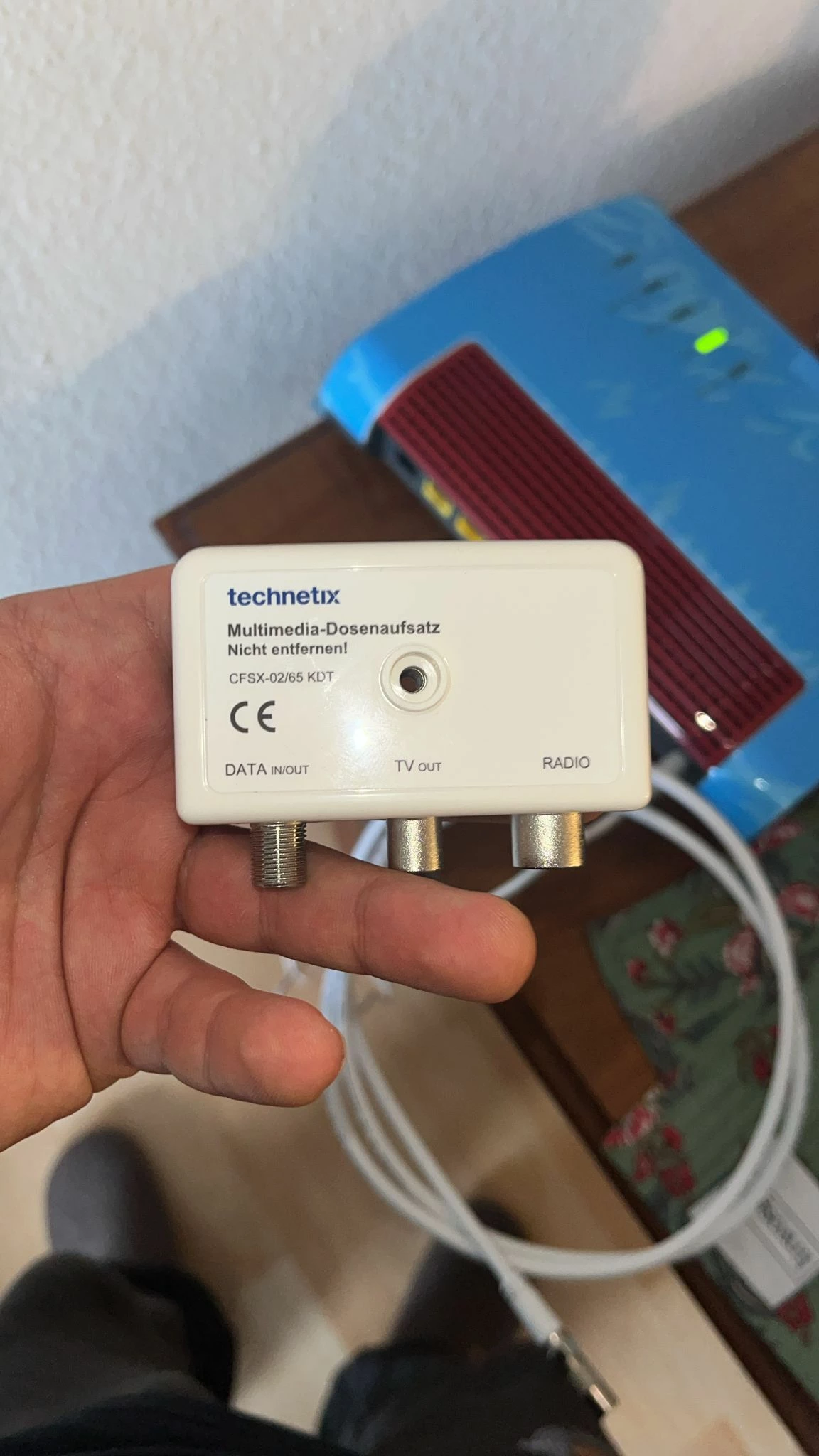 Die andere beim der Hotline anrufen das ein Techniker die Dose tauschen muss, weil der Adapter nicht passt.