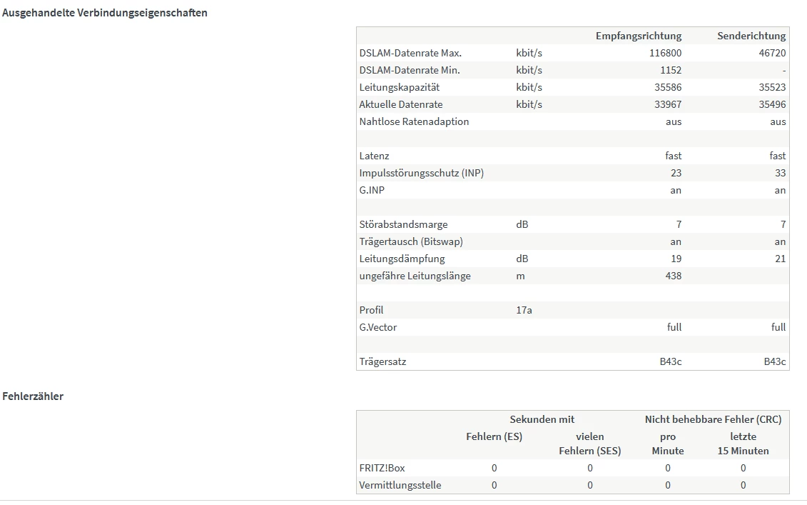 Es liegt wohl an der Leitung vom Verteiler im Keller zur Wohnung zu mir an die Büchse….
