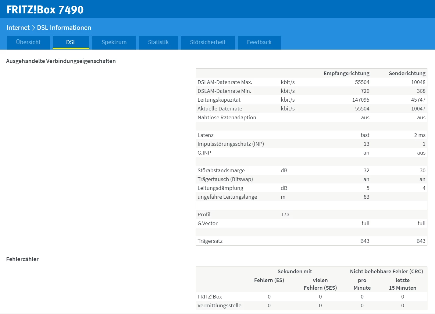 Nutzt du noch einen Splitter, oder ist die Fritzbox direkt mit der ersten TAE-Dose mit dem mitgelieferten grauen DSL-Kabel verbunden?