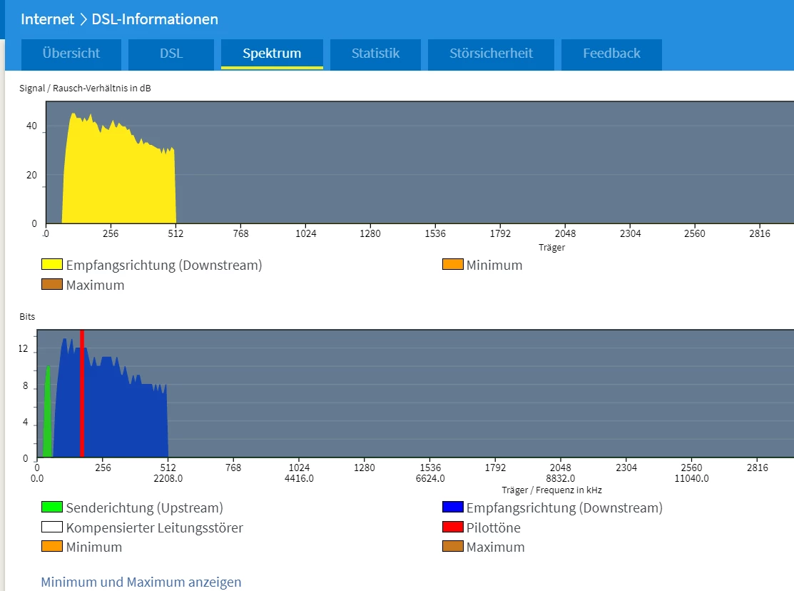 Zunächst einmal hatte ich eine recht alte “Umschalter T2” Dose installiert. Neue Dose hat allerdings auch nicht viel geholfen, da zwischen Hausanschluss und Dose etwas gestört zu sein scheint. Hab jetzt einfach eine neue Dose direkt neben dem Hausanschluss bekommen und der Router steht nun direkt im Kelleraufgang - damit kann ich gut leben…