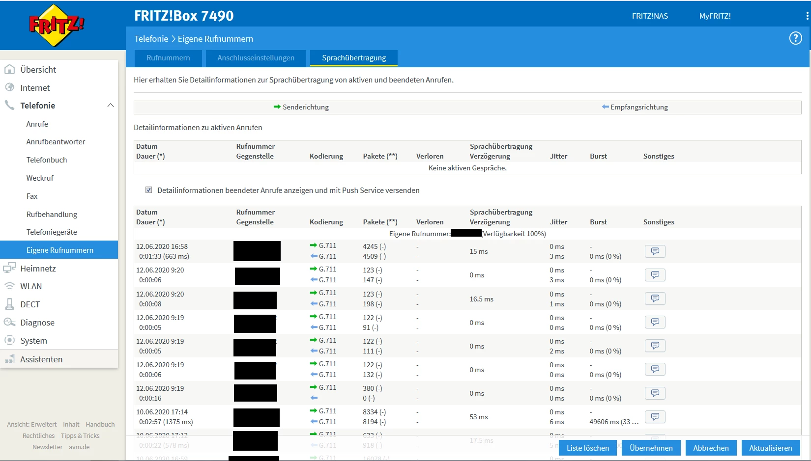 Nach mehreren Testanrufen besteht das gleiche Problem.