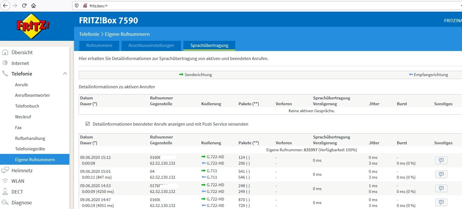Wie ist die Sprachkodierung bzw. welcher Sip Server? Könntest Du bitte einen Screenshot einstellen? (Achtung! Rufnummern unkenntlich machen) Danke.