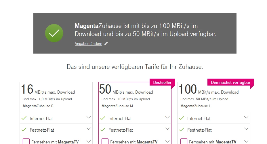 Ich habe bei Telekom die Verfügbarkeittest gemacht. Es kommt folgendes: