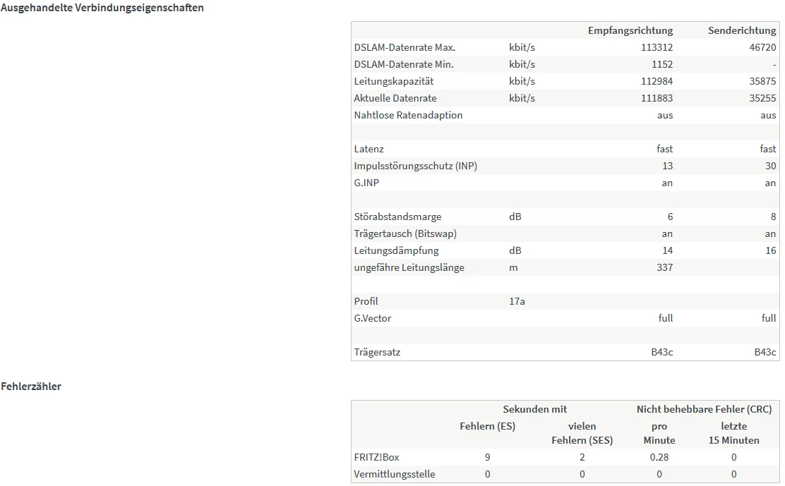 Du siehst dann allerdings in deiner Fritzbox eine höhere Leitungskapazität von mehr als 100 Mbit und G.Vector full full.