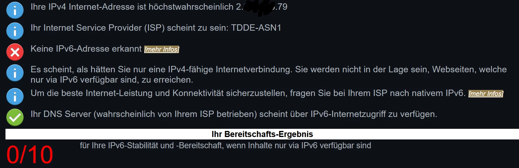 Und IPv6 ist auch hierdurch erwiesen: “ Es zeigen leider auch nur ein par Geräte im Heimnetz eine inet6 Adresse unter ifconfig/ipconfig an “
