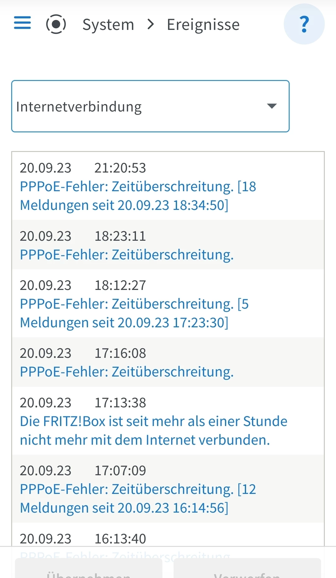 @Marbell76 Was steht genau in der Ereignis Anzeige der Fritzbox unter System gefiltert nach Internet?