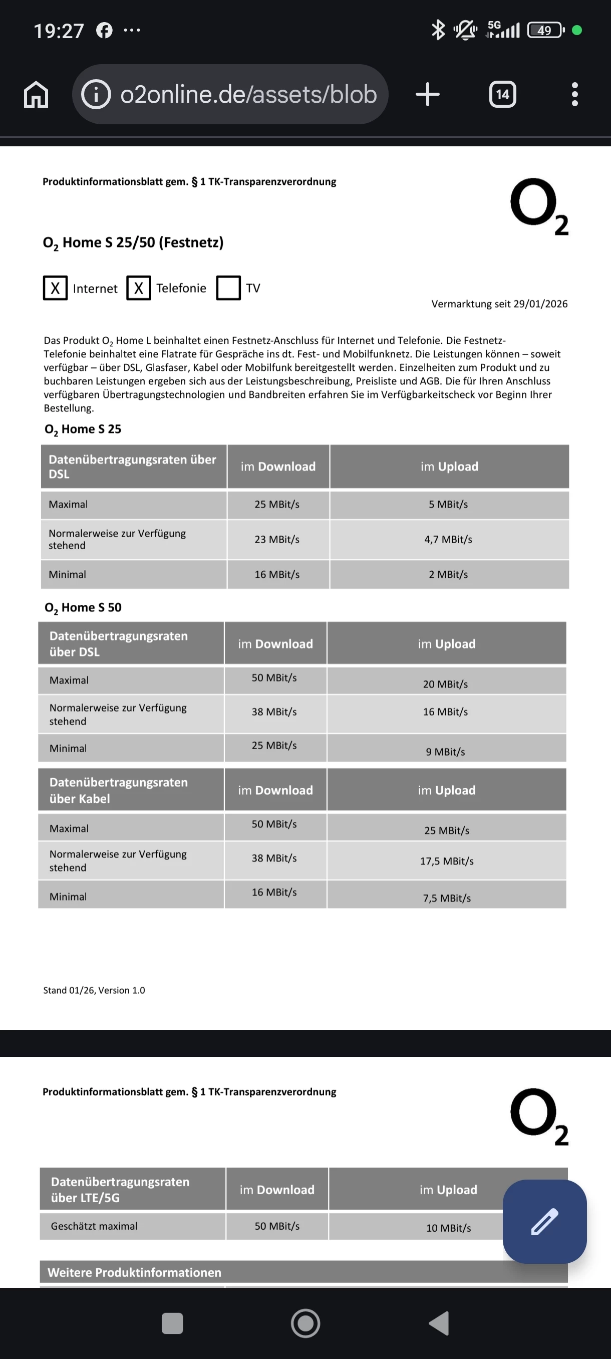Vielleicht bin einfach zu doof aber das steht Glasfaser ( das kann nicht sein da bisher kein Ausbau erfolgt ist) 5g/LTE und DSL. Was mich ein wenig stutzig macht ist die Tatsache das bei dem o2 Home s 25 deutlich mehr Speed als Minimum angegeben wird als in meinem Vertrag o2 my Home m 🤔 wenn lt Check das angeboten wird sollte doch eine Umstellung auf VDSL möglich sein. Oder irre ich mich da🙈