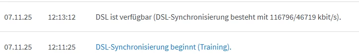 Heute am 07.11.2025 wurde scheinbar etwas an meinem DSL-Profil geändert.