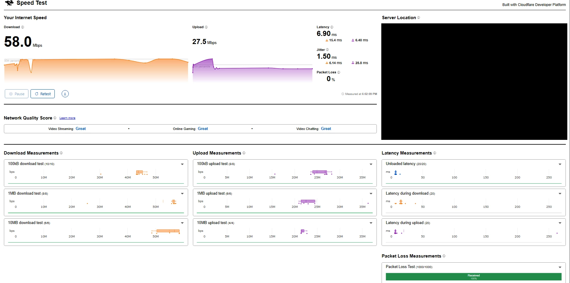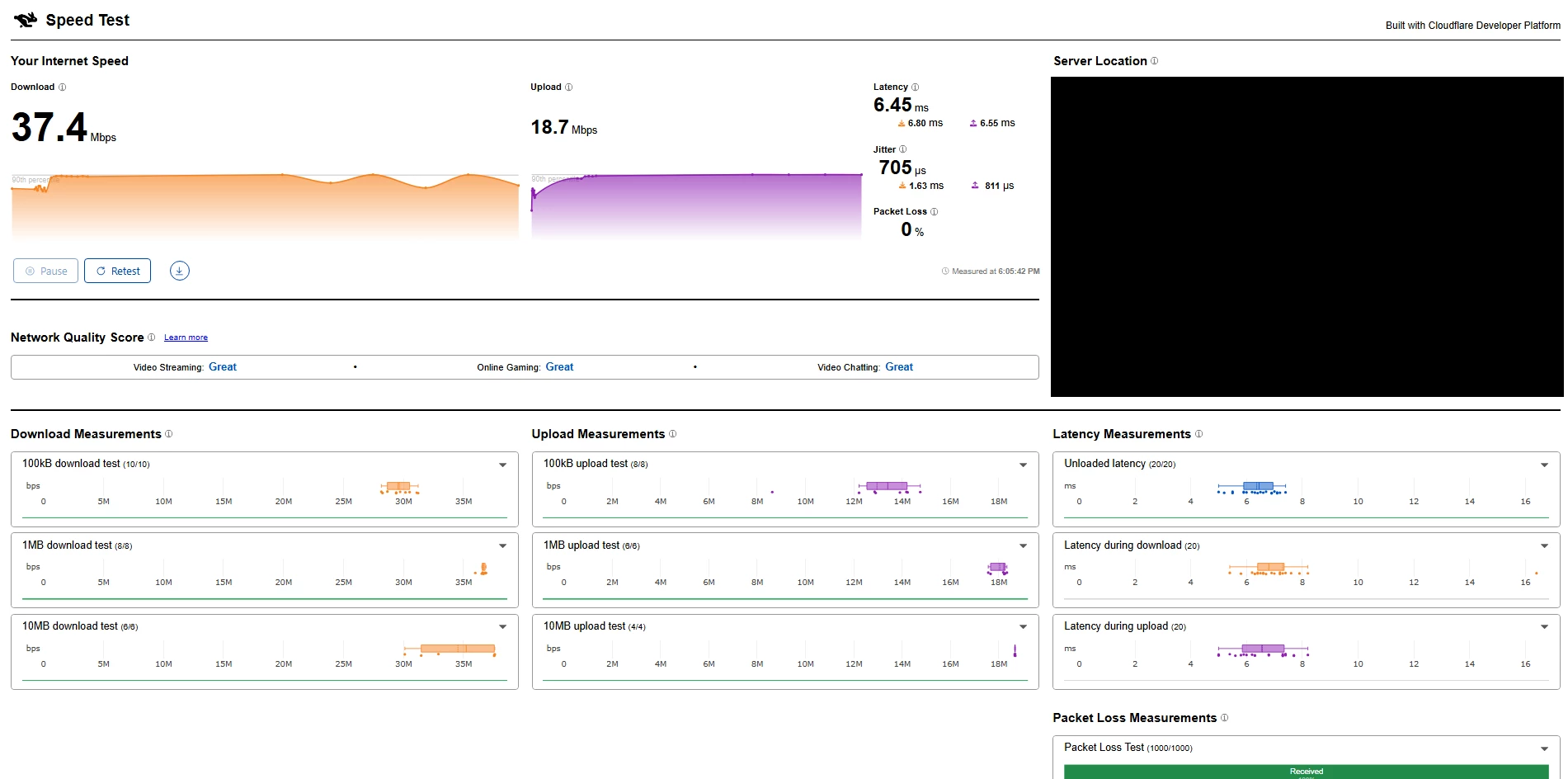 (Bitte testen, Screenshot machen und hier posten, Achtung die Karte oben links auf der Speedtestseite zeigt Deine geschaetzte Position und Deine IP Adresse, die willst Du vielleicht vor dem Posten  schwaerzen)