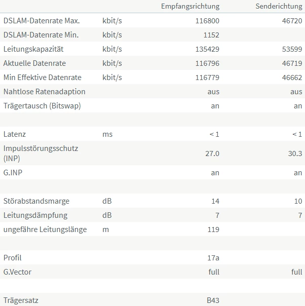 Zum Thema Datenrate, eine hohe Datenrate (relativ zur Leitungskapazitaet) fuehrt zu geringerer Stoerabstandsmarge und bei G.INP kann das dann zu haeufigeren Retransmits und damit erhoehtem Jitter fuehren… in sofern ist das “DSL50er” Syncprofil 63.680/23.360 vieelech sogar besser fuer on-line Spiele als das DSL100er (mit Synclimit 116.800 / 46.720).