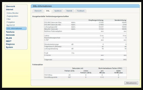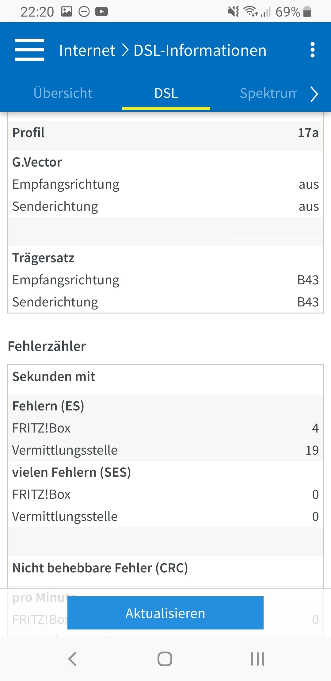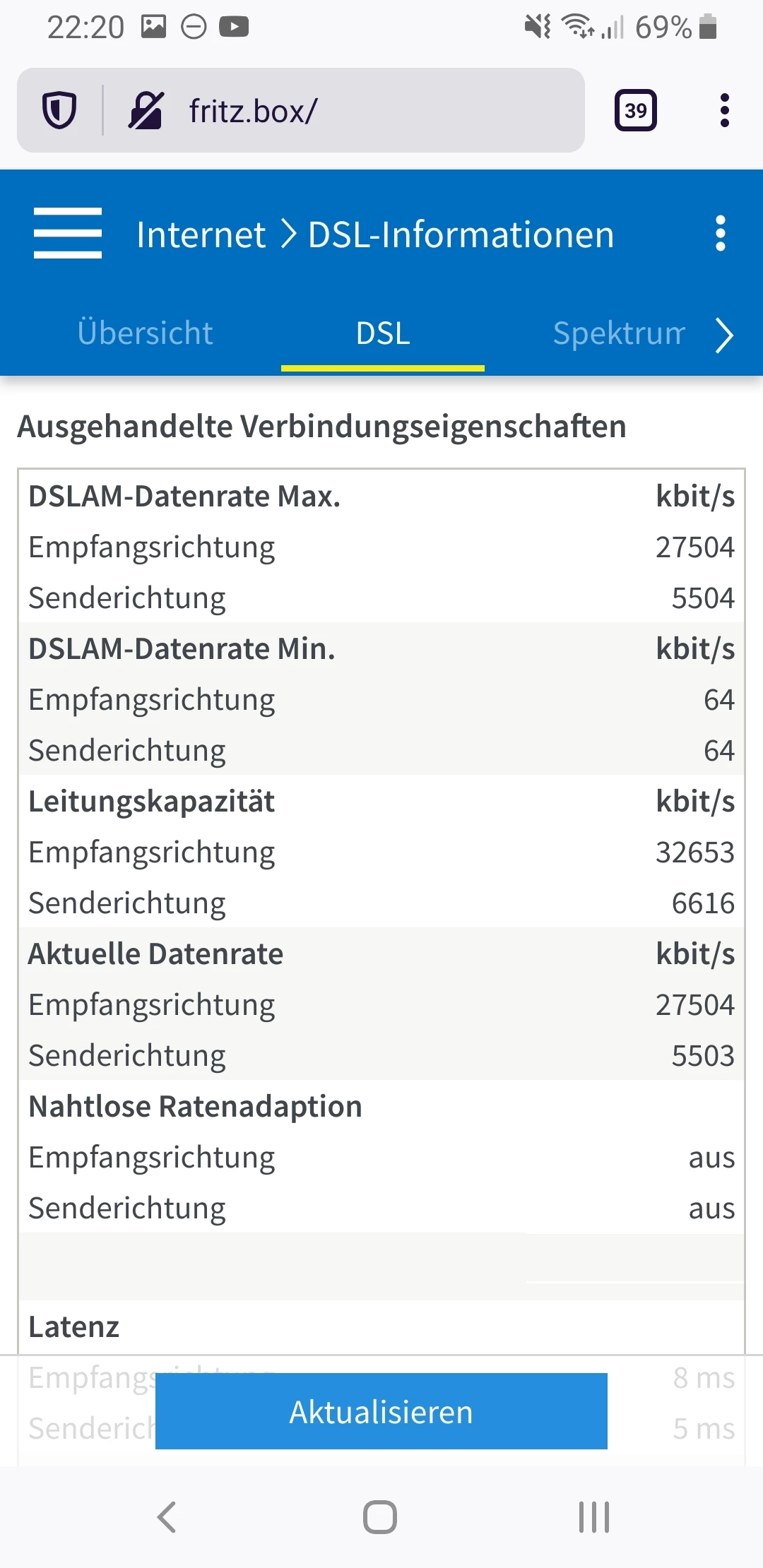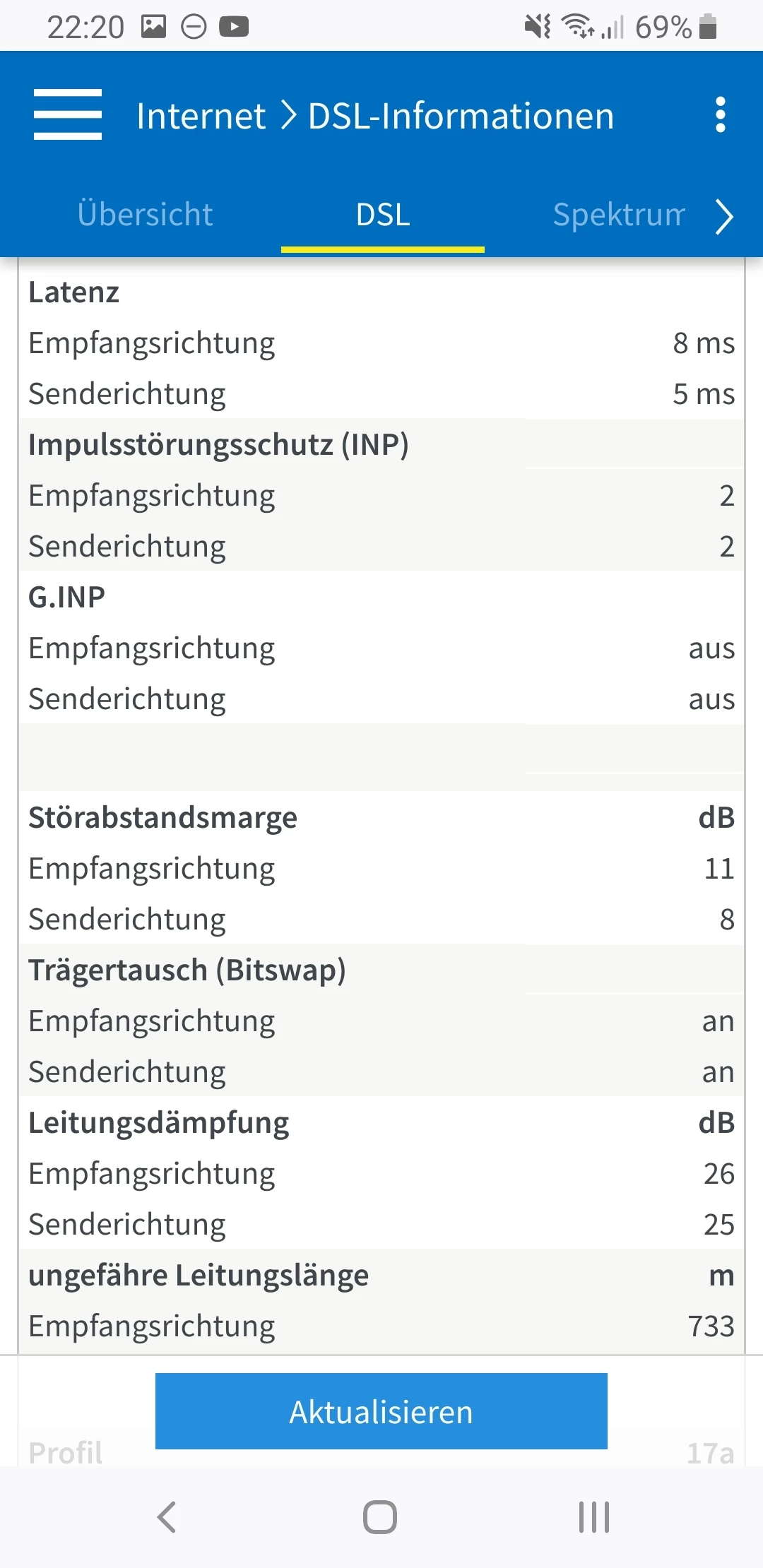 Nutzt du zufällig eine Fritzbox? Falls ja lad bitte mal einen Screenshot der DSL Informationen hier hoch, der sollte in etwa so aussehen