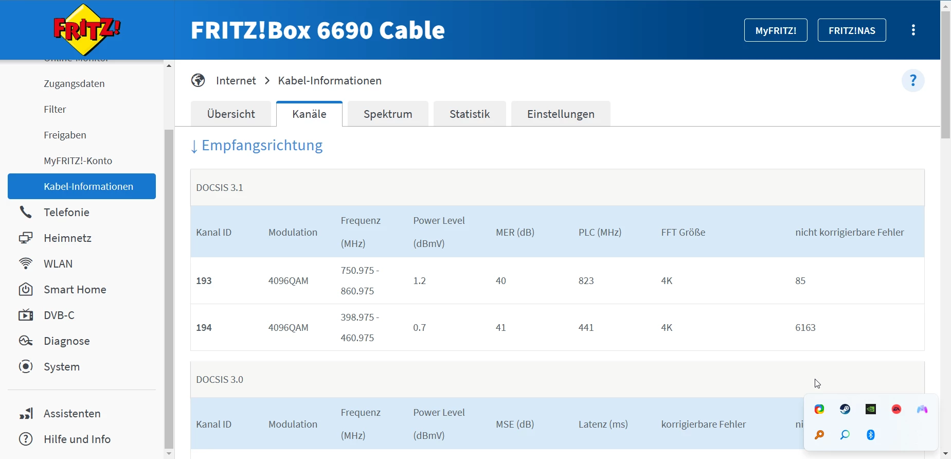 Diese Kanäle weisen, als einzige nicht korrigierbare Fehler auf. Es handelt sich um meine eigene FritzBox 6690 Cable. Diese ist relativ neu und hatte noch nie Probleme mit dieser. Diese Probleme treten erst seit kurzem auf. Ich weiß nicht, ob der Kundenservice mir helfen wird, da es sich um meine eigene Box handelt.