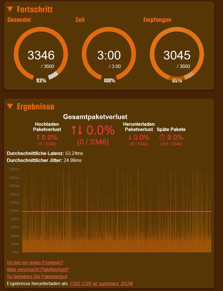 Er zeigt zwar an, dass keine Pakete verloren gegangen sind aber in Spielen wird mir dauernd angezeigt, besonders im Spiel, in Menüs geht das noch, dass Paketverlust besteht. Ich sende dir mal die anderen Analysen, einen Moment