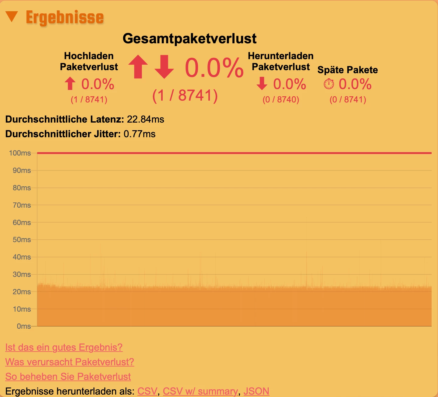 Zu guter letzt hier ein Test um Paketverlust und Latenzerhoehungen zu untersuchen:
