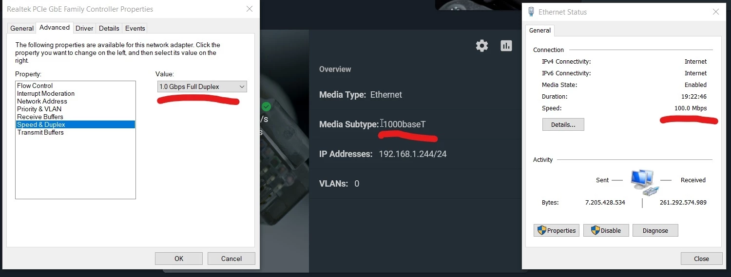 In Windows habe ich nochmal manuell auf auf Vollduplex umgestellt nichts hat sich verändert, immernoch 100/100.
