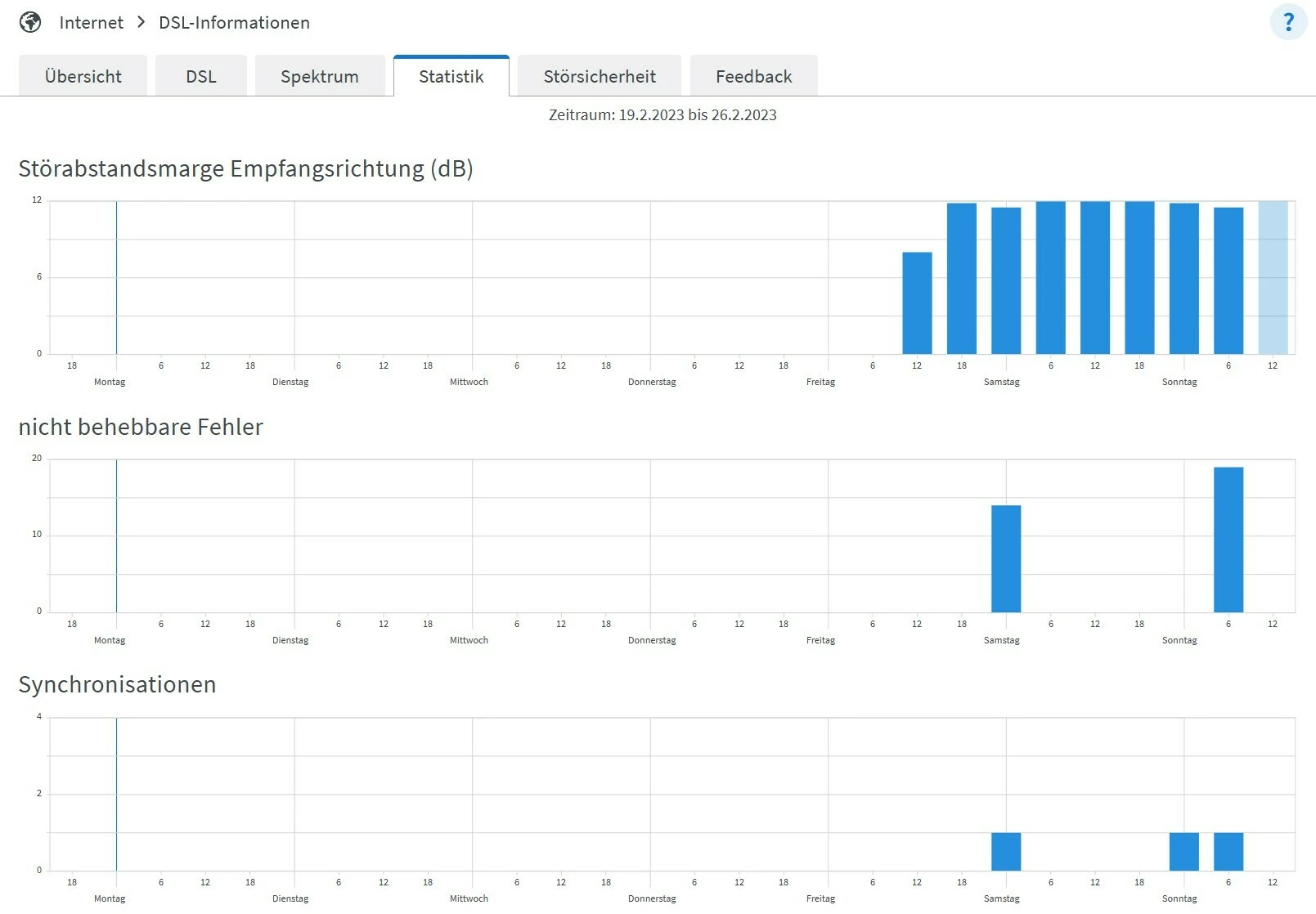 Ich hoffe da ist das Gewünschte dabei. In der Statistik fehlen die Daten vor dem 24.02. , da ich an diesem Tag die Fritzbox neu gestartet habe (hat die o2myserviceapp vorgeschlagen).