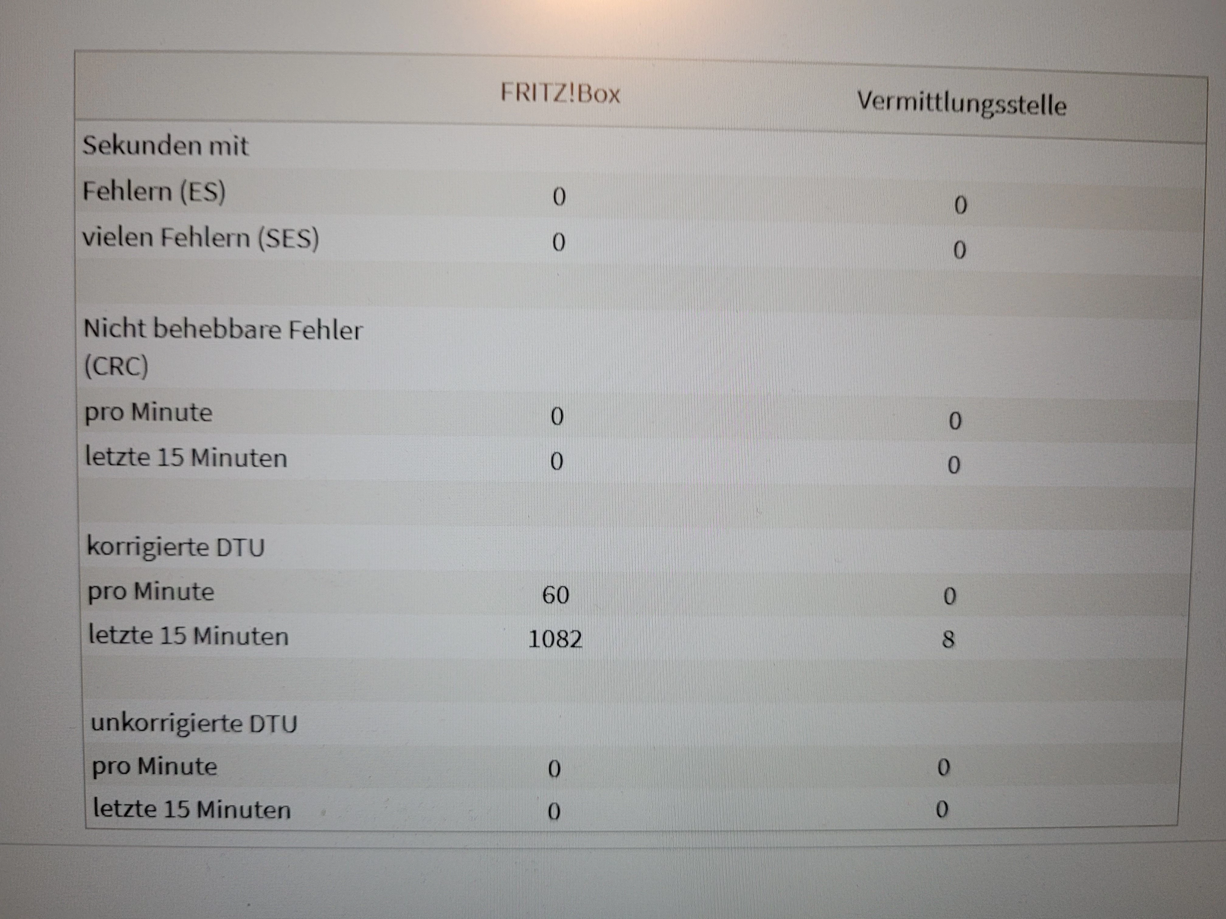 Aktuell Werte gut, keine crc Fehler und keine unkorrigierten DTU.