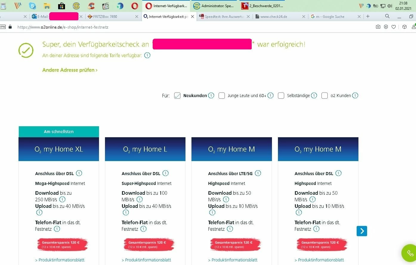 Eilt O2 Dsl Leitung ab 1.1.21 immer wieder tot!!! Muss 4.1.21 Online Termin erledigen usw.!