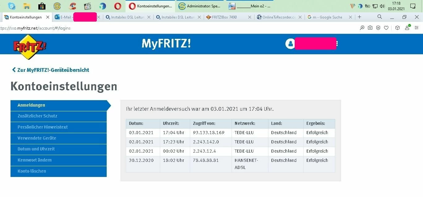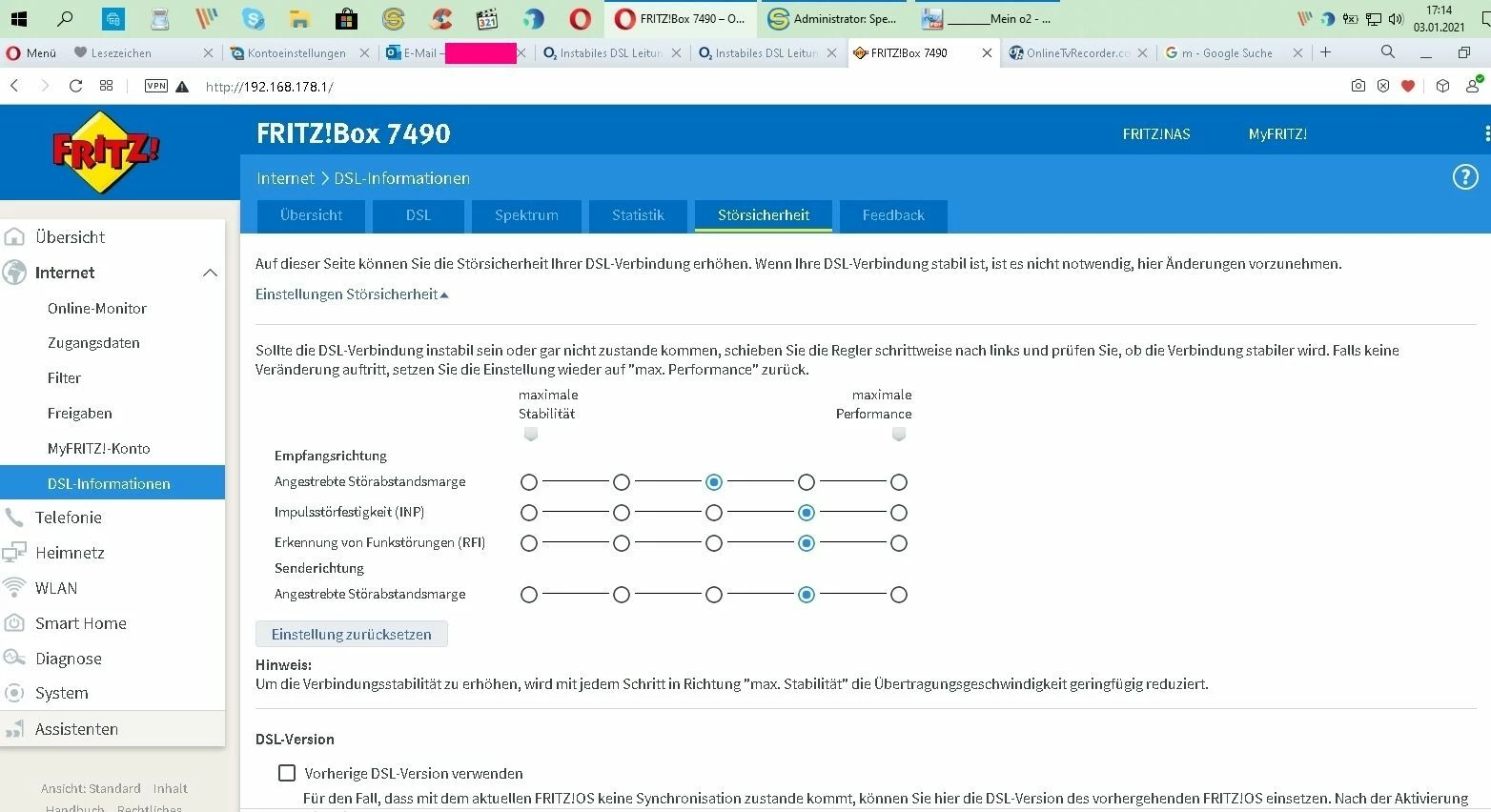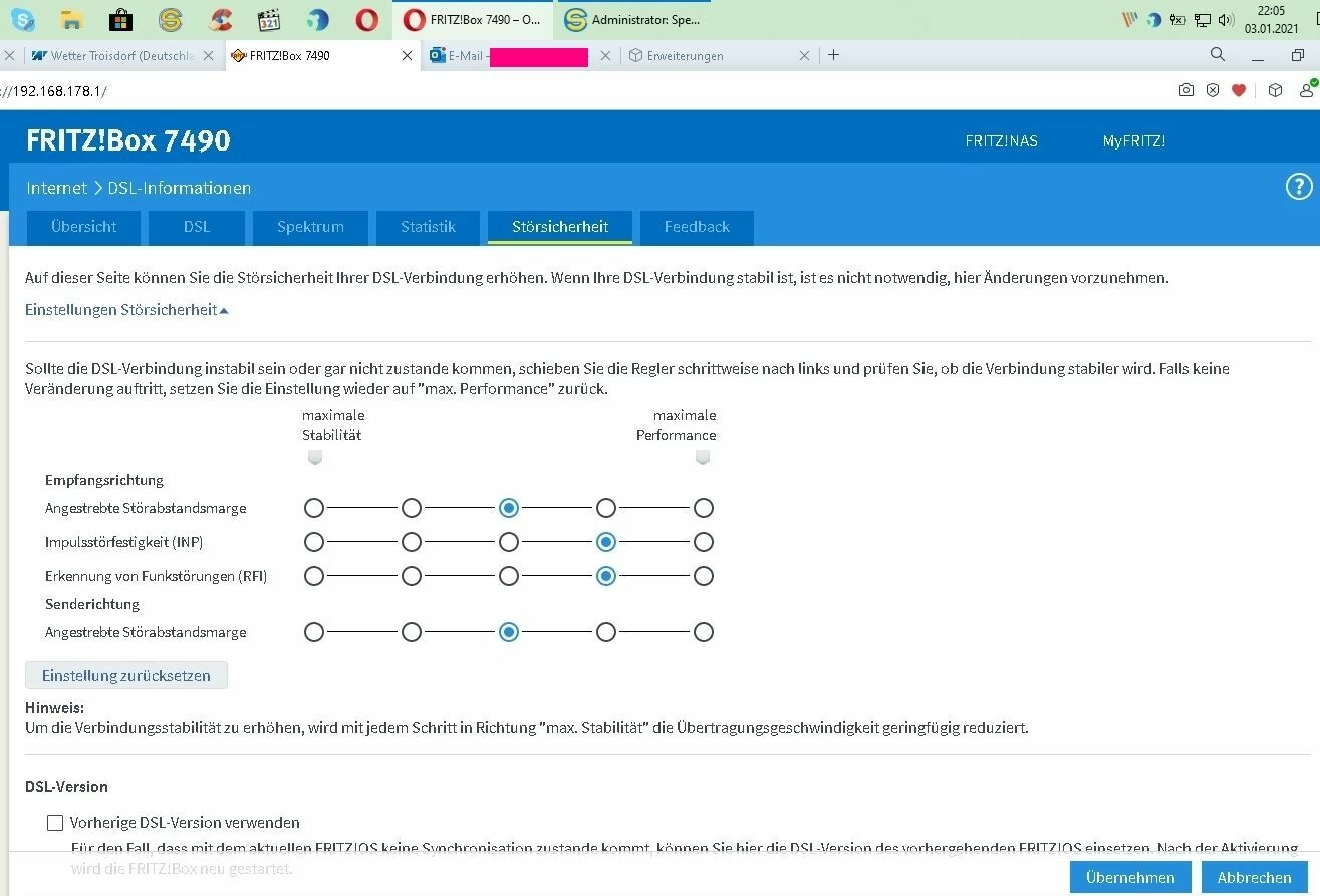 Instabiles DSL Leitung fast nie nutzbar ab 1.1.21