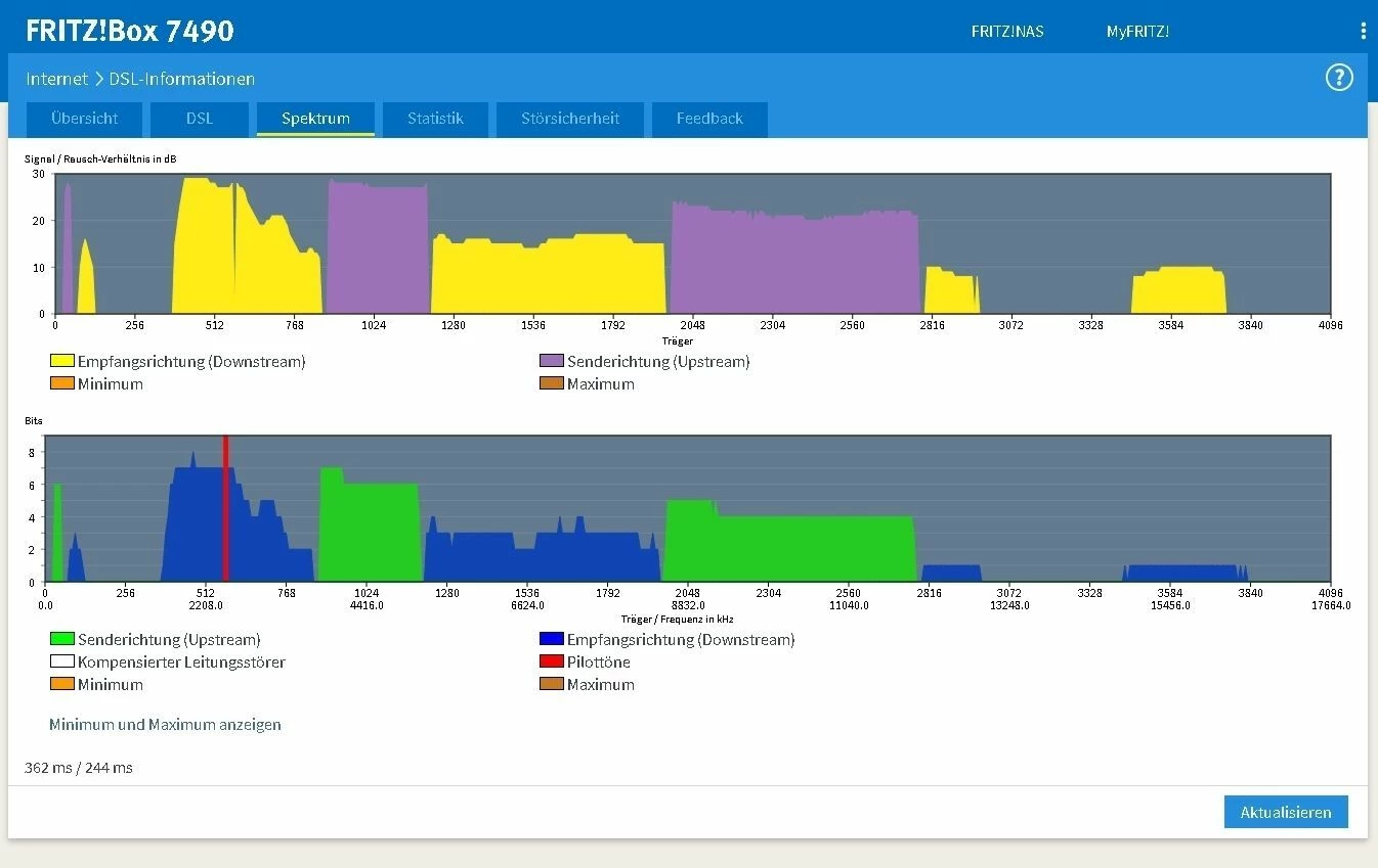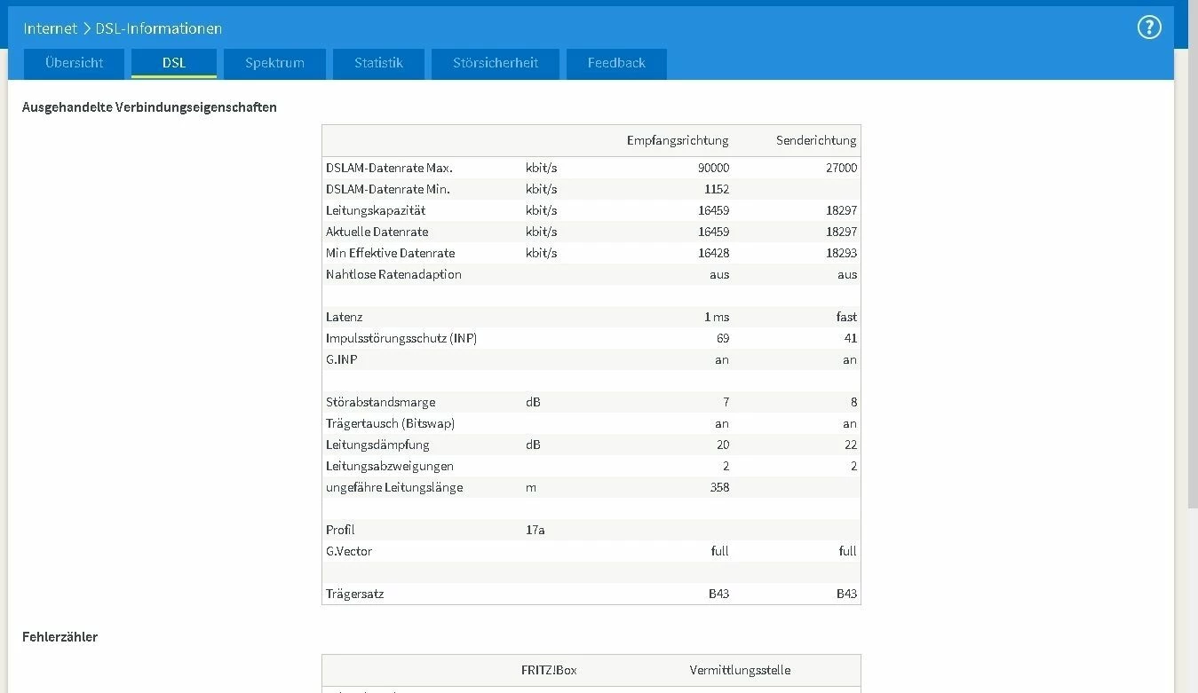 Sonst auch mal die die Bildschirme der Fritzbox hier als Bild mit grünen Pfeil hochladen. Zum Testen mal auf Störsicherheit gehen und auf “maximale Stabilität” stellen.