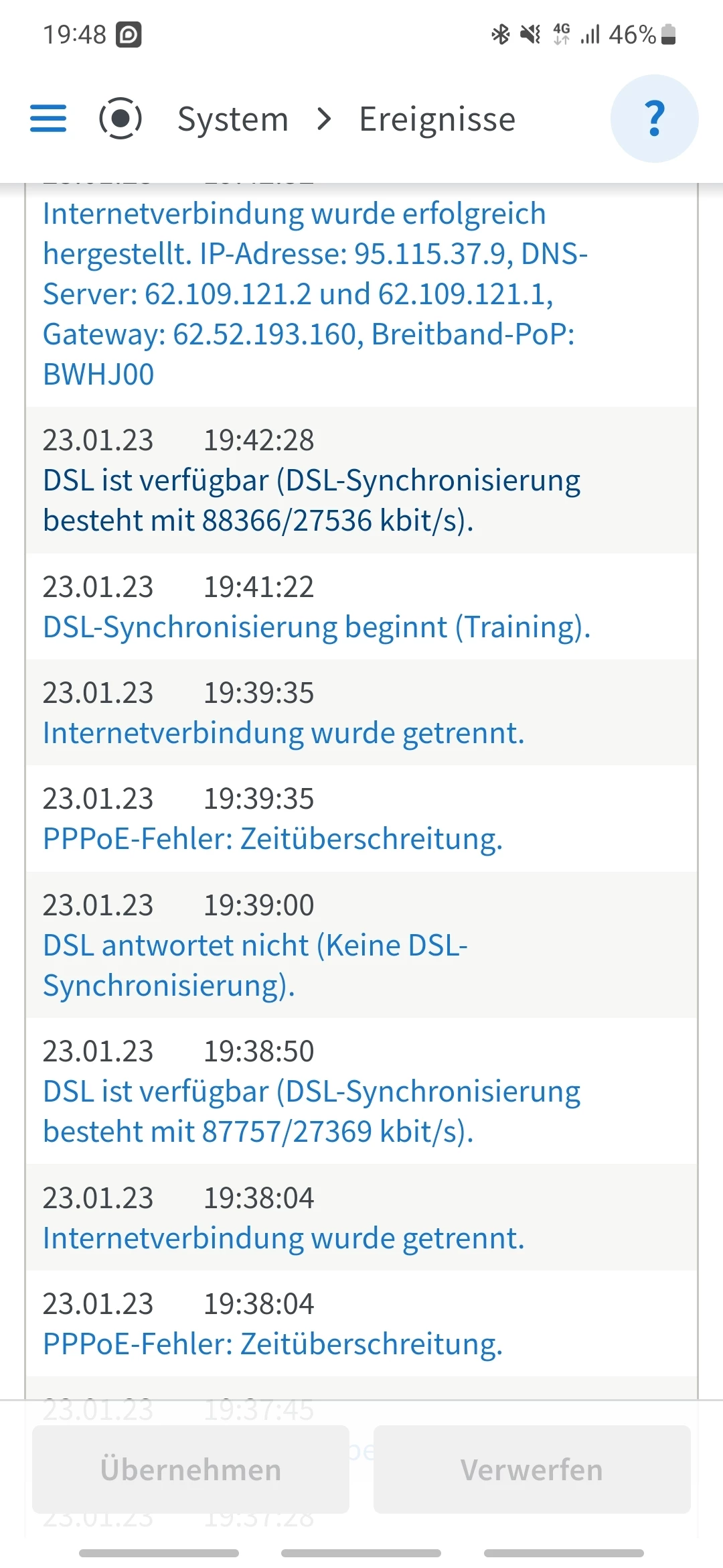 Falls DSL: Wie viele TAE-Dosen sind vorhanden? Nutzt du PLC-Adapter? Ist noch ein DSL-Splitter verbaut oder nutzt du das mitgelieferte DSL-Anschlusskabel? Ist es verlängert oder an einem Stück?