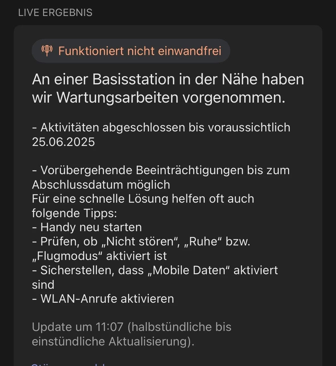 Und ja, der Screenshot des Problems oben sieht ganz nach einem reinen Mobilfunkproblem aus, aber an diesem Punkt bin ich einfach nur noch verzweifelt und versuche, irgendeinen Grund dafür zu finden 😀