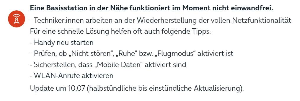 Bei der letzten Störung im September konnten die Probleme nicht nachvollzogen werden oder waren schon verschwunden, daher immer möglichst sofort anrufen. Hier über die Community können wir leider keine Störungsmeldungen aufnehmen.