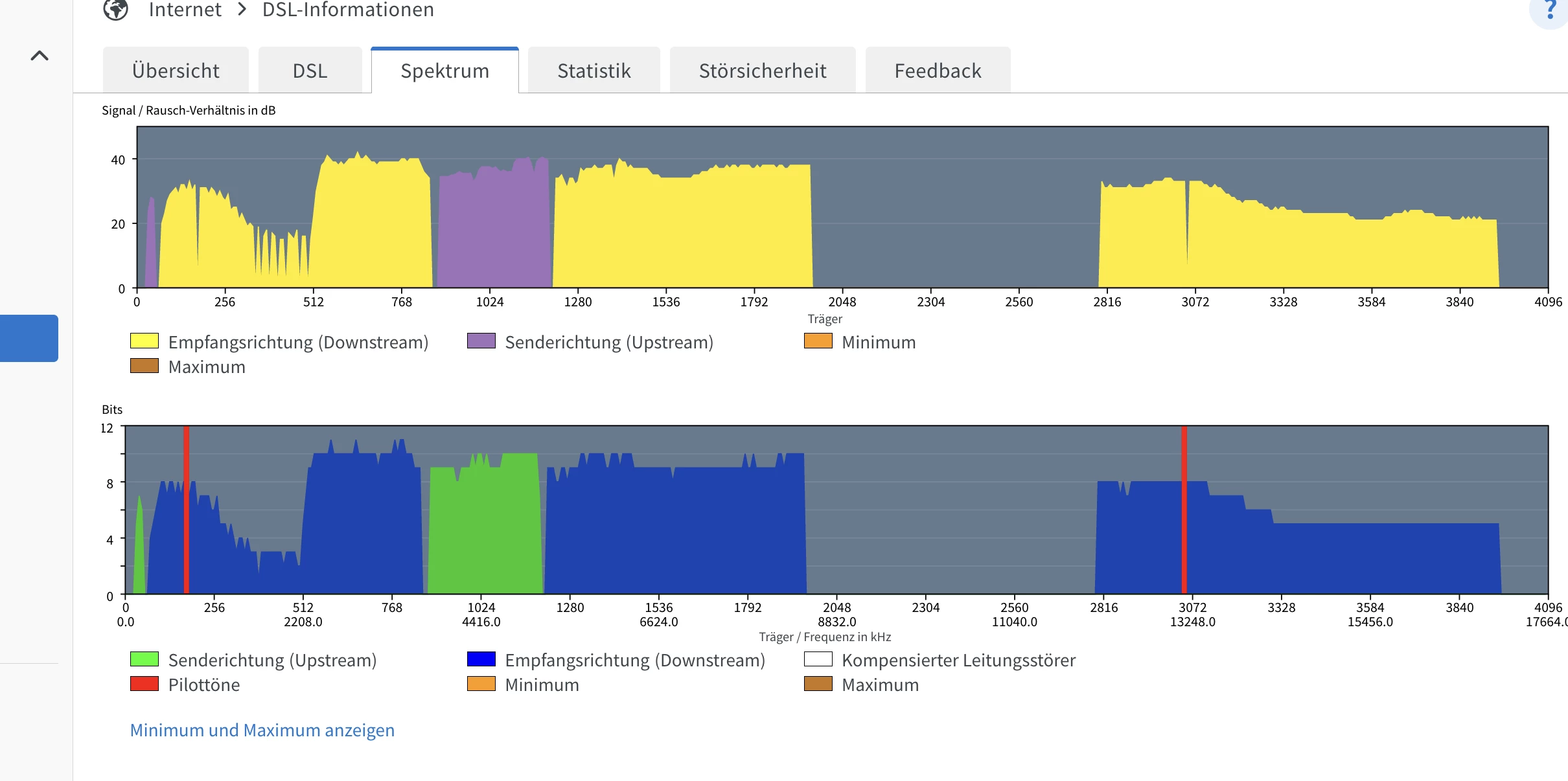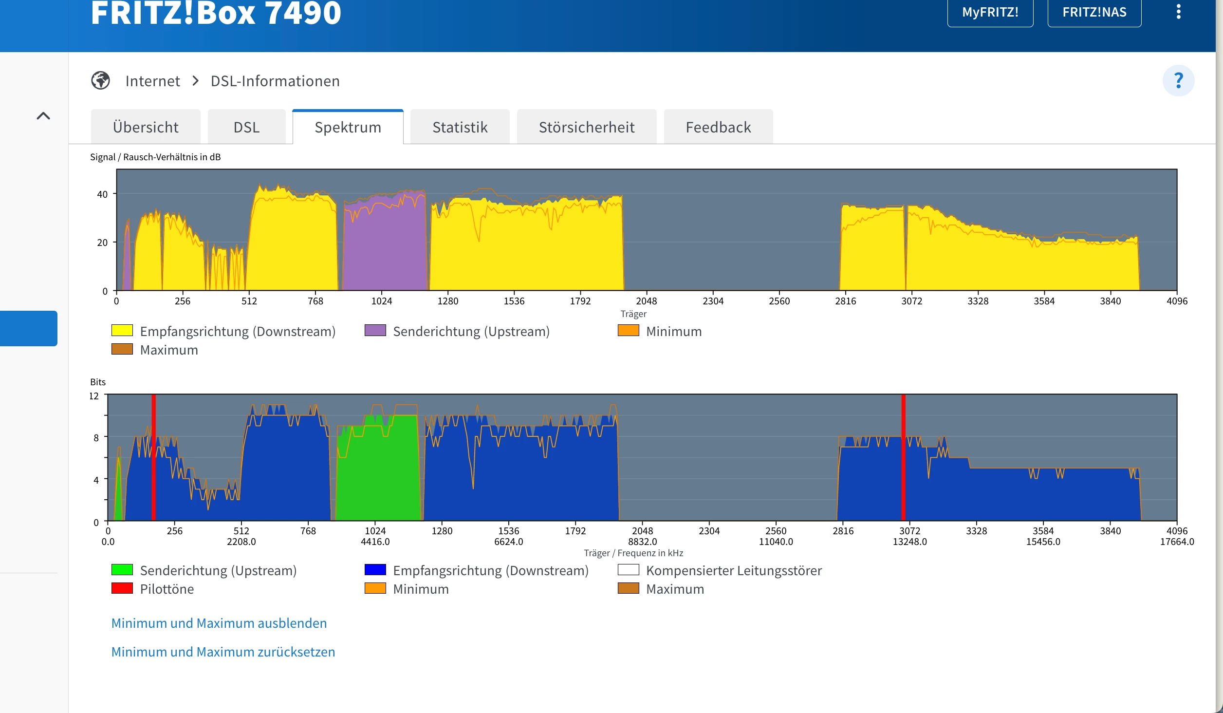 Bitte nochmal den Screenshot von Spektrum wiederholen (moeglichst ein paar Stunden nach dem letzten Resync) und dabei vorher den Link “Maximum und Minimum anzeigen” anklicken.