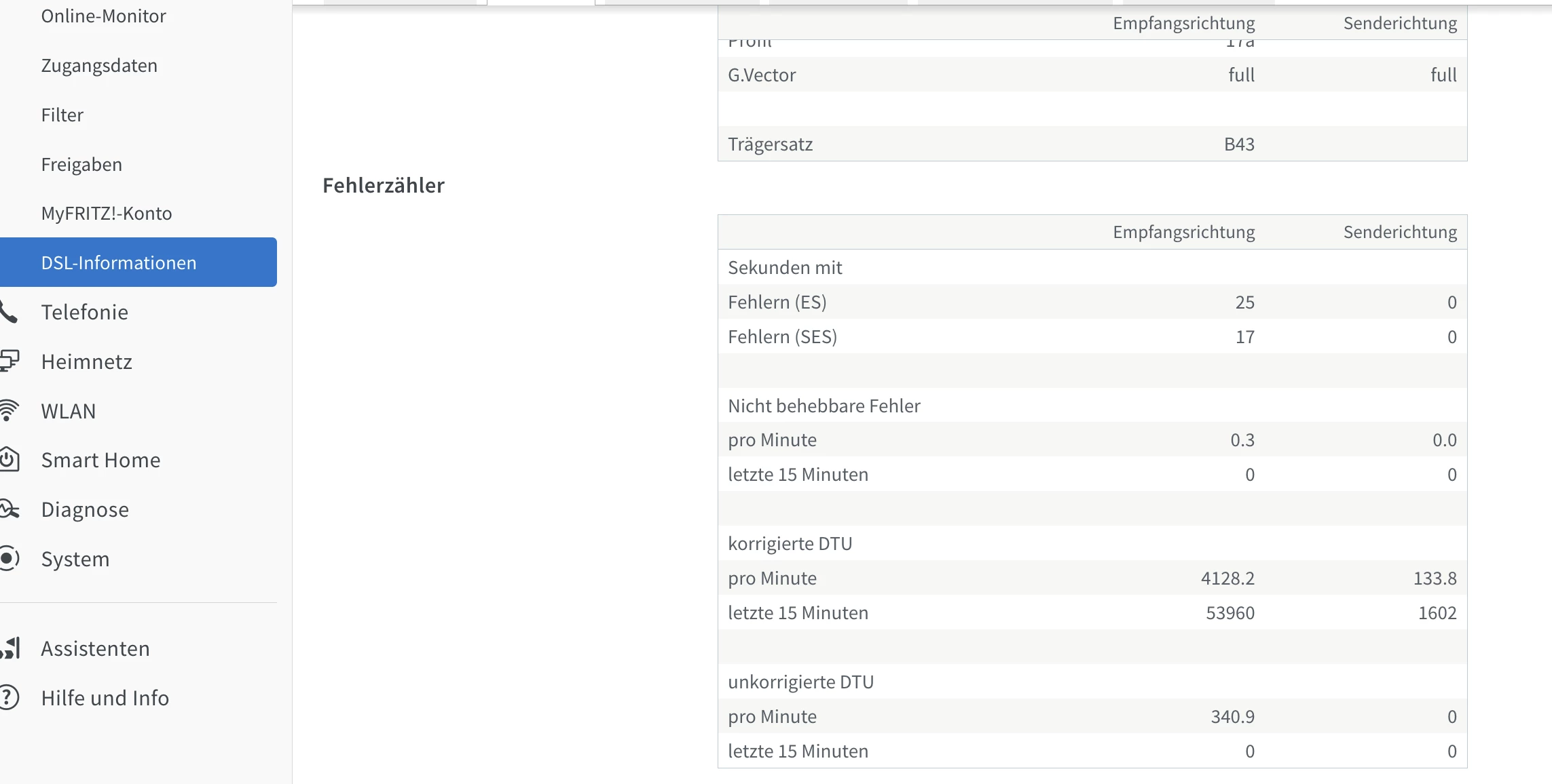 Bei DSL sind halt ALLE Werte interessant.