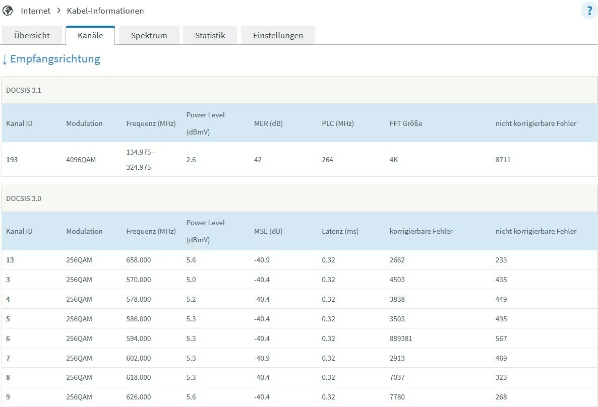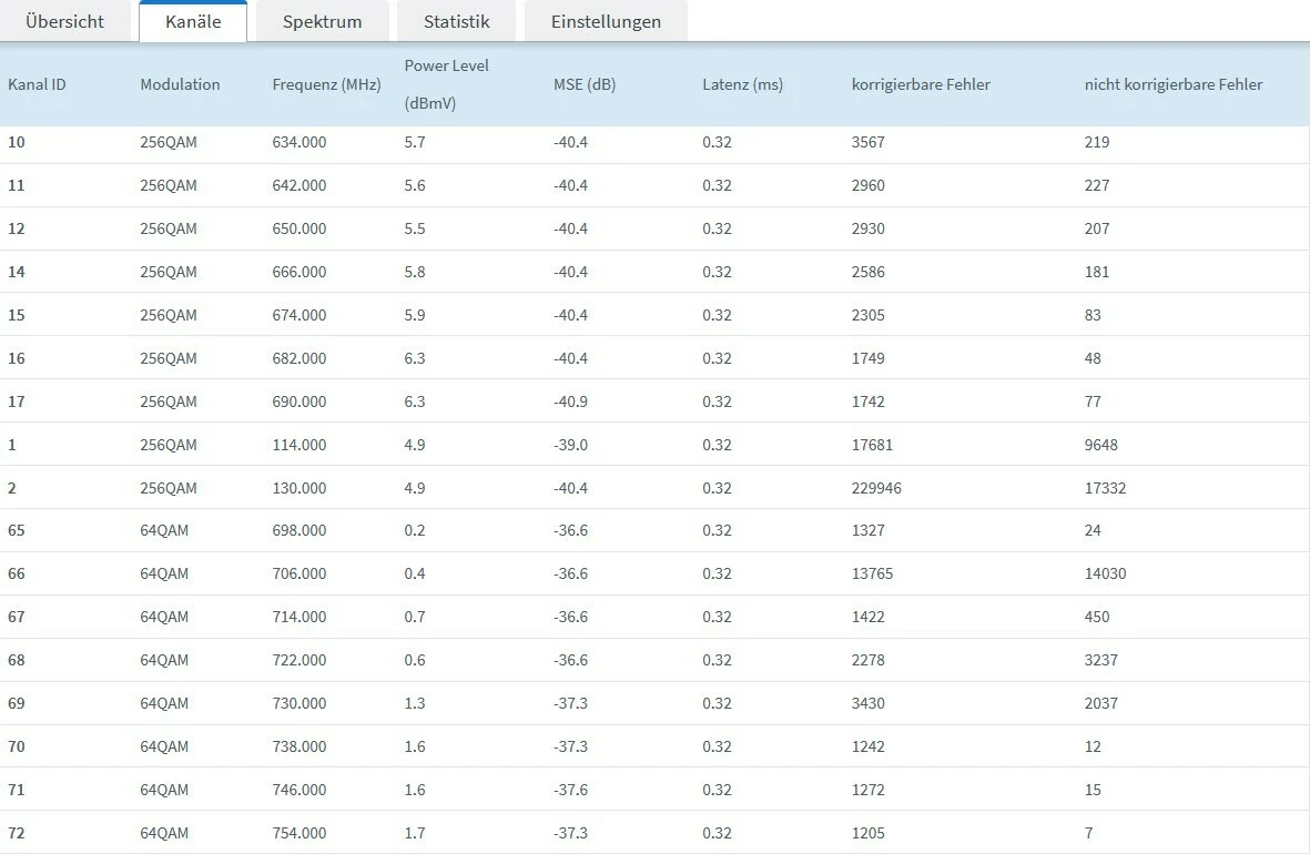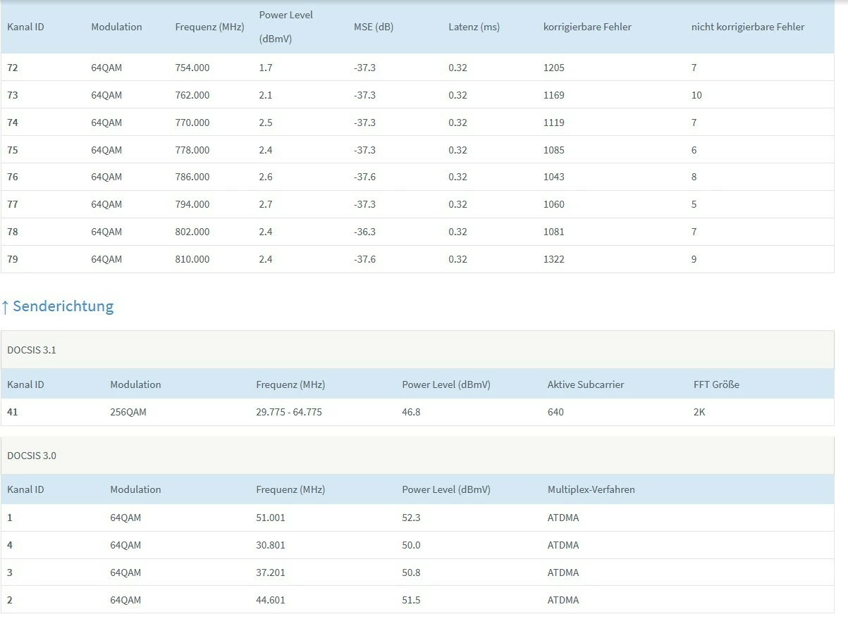 Ansonsten versuch doch mal noch Screenshots der Kanaldaten zu machen wenn die Stoerung gerade stattfindet und/oder so schnell wie moeglich nach Ende der Stoerung…