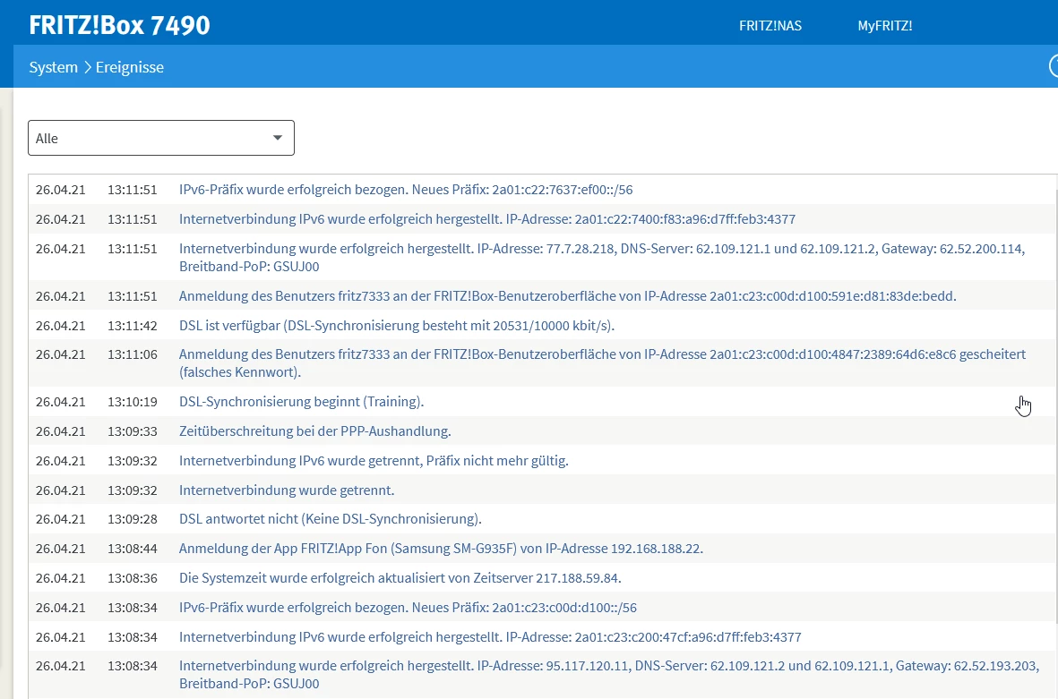 Ich habe mir deinen Anschluss gerne einmal angeschaut, hier sollte in der Tat eine Störungsmeldung aufgenommen werden, da der Anschluss auch immer wieder Leitungsabbrüche aufweist. Da ist sicher irgendetwas nicht in Ordnung, den Hinweis von @rentek, die Verkabelung einmal zu überprüfen, würde ich noch etwas erweitern: bitte keine Verlängerungskabel oder Mehrfachsteckdosen verwenden.