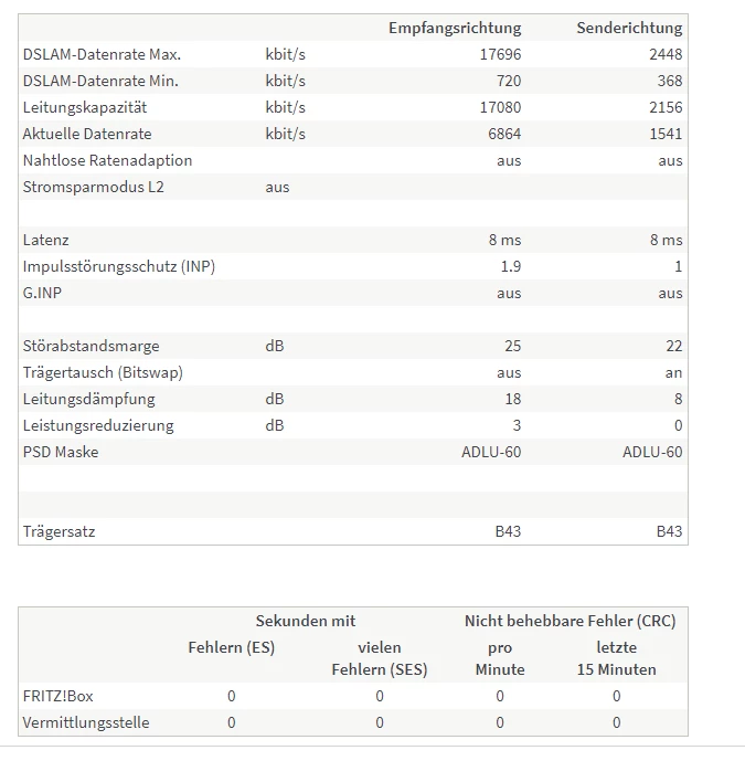 Starte dann die Fritzbox mal neu und poste dann nach dem Neustart einen Screenshot der DSL-Tabelle, um Änderungen nachvollziehen zu können.