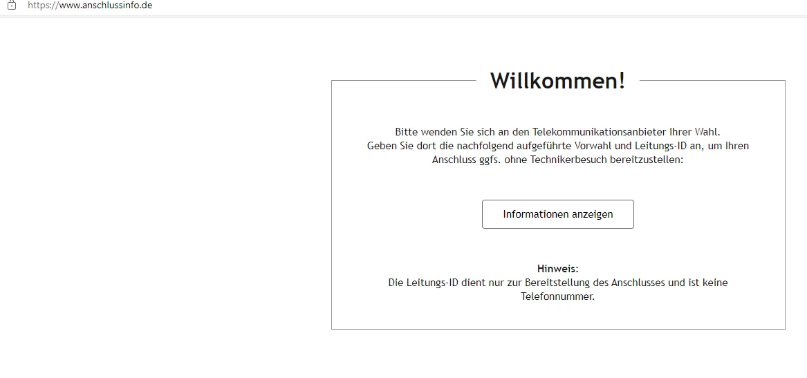 wenn eine Expressaktivierung für deinen Anschluss möglich ist, wird dir die Leitungs-ID unter Anschlussinformation angezeigt. Über den Über den Button „Informationen anzeigen“ wird sie dir dann angezeigt: