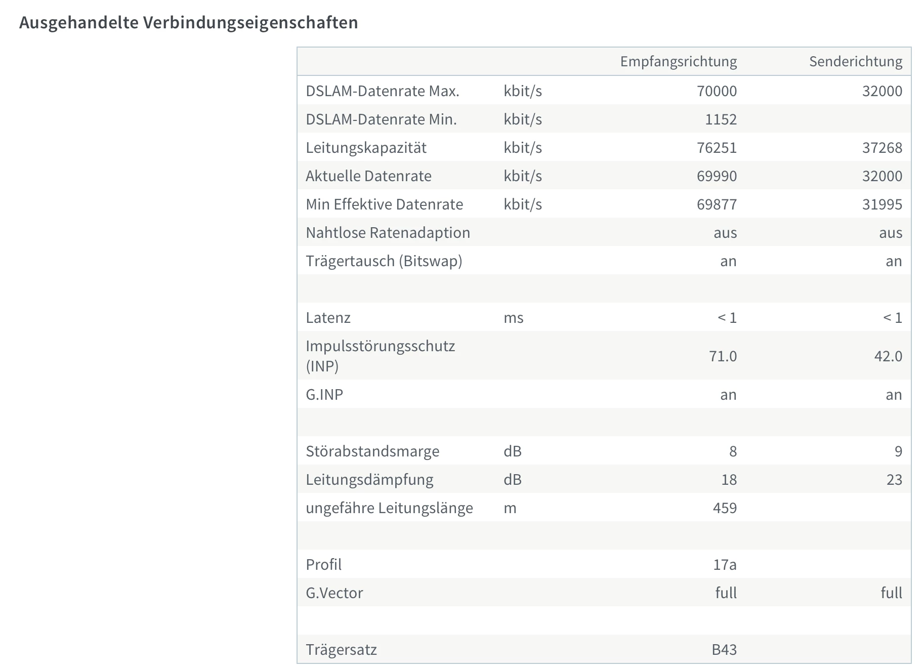 So Melde mich noch mal hier zu Meinen DSL 100Mbit/s die immer noch 69947 sind.