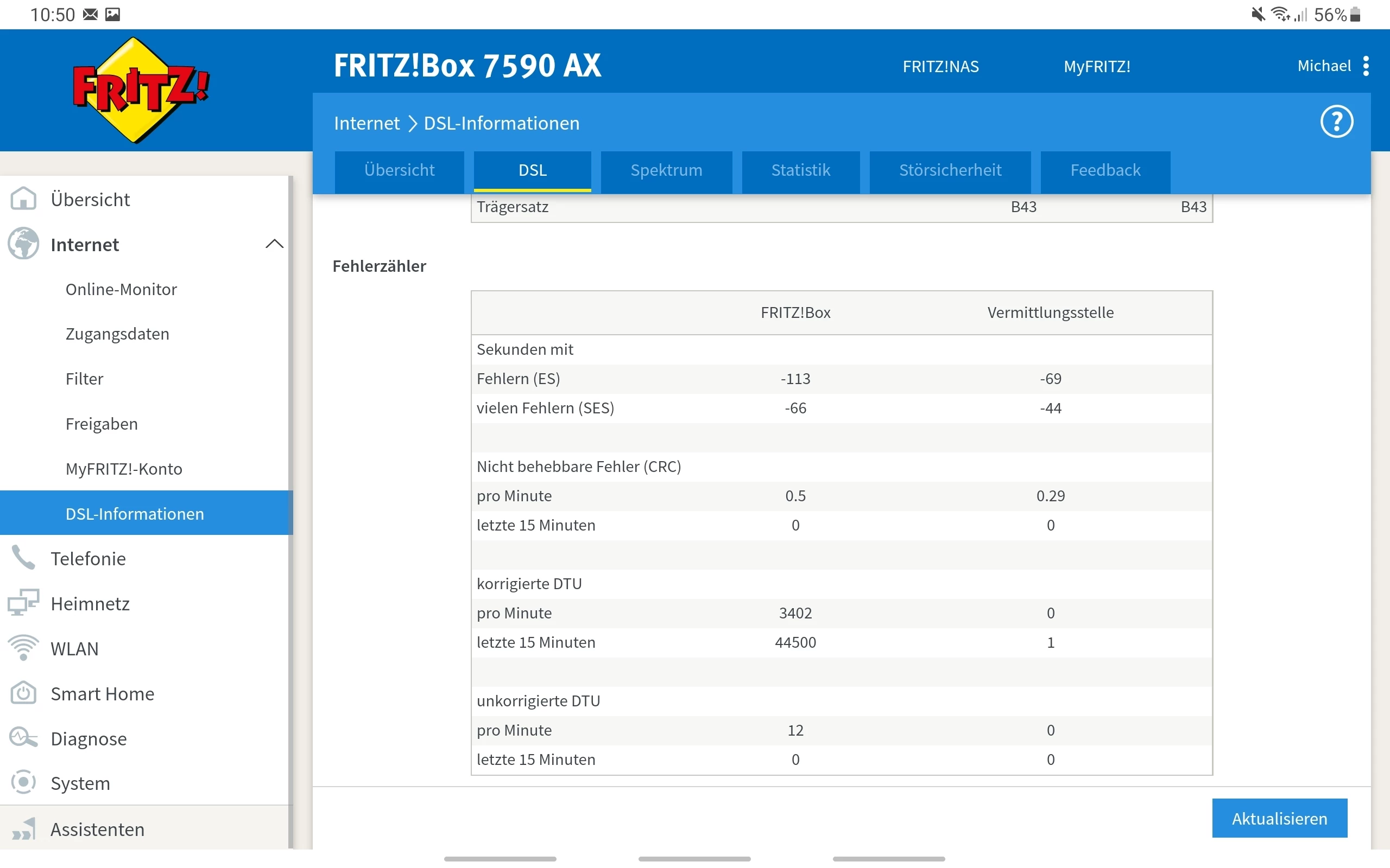 @Mike 74 Der vorletzte Screenshot (der mit den DTU Fehlern) ist gemacht worden, nachdem die Fritzbox gerade eingeschaltet bzw gebootet wurde? Die ersten 15-30 Minuten sind DTU Fehlern normal. Danach sollte Sie so gut wie nicht vorhanden sein. Wenn doch, so gibt es technische Probleme die massive Performance Verluste verursachen.