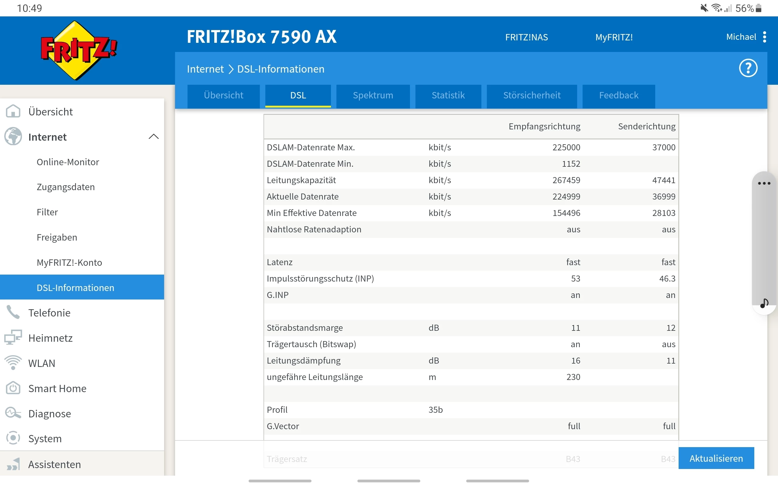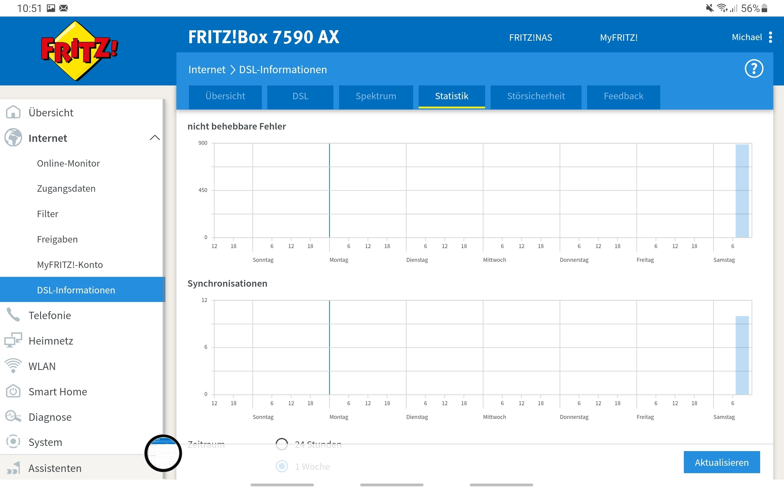 Bei DSL auch die Werte weiter unten. Statistik auf Woche stellen.