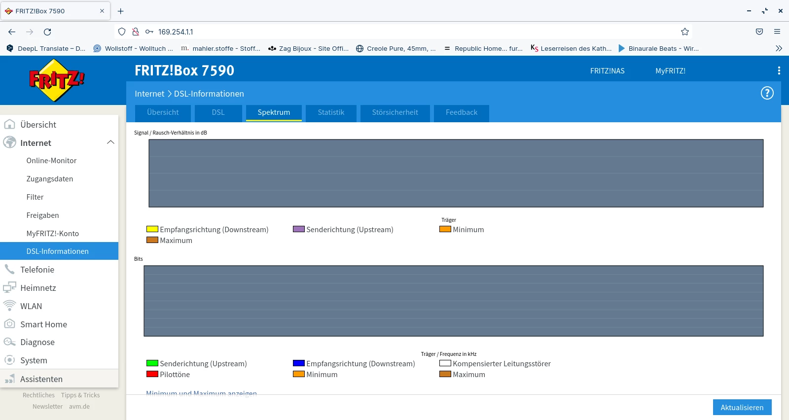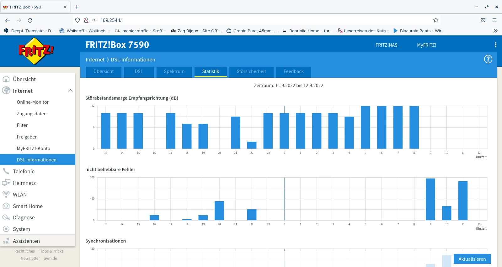 Seit Anfang August hab ich Probleme mit meinem Internet. Anschluss 50Mbit/s mit Fritz Box 7590. Techniker waren schon Zwei Mal da, TAE Dose ausgetauscht, Leitungen in WHG  und im Keller/Verteiler - alles in Ordnung. An Fritzbox alle empfohlene Maßnahmen durchgeführt - ohne Besserung. Ticket läuft noch. Die Unterbrechungen sind jede paar Minuten, mit jeder Syn. ändert sich die Datenrate. Die ungefähre Leitungslänge auch. Vor ca.3 Jahren wurden die gesamten Stromleitungen im Haus erneuert, weil alles veraltet. Als Techniker TAE Dose ausgewechselt hat, meinte er, es sei nicht gut gearbeitet worden. Kann mir durchaus vorstellen, dass im Haus aufgrund vielleicht der Hitze auch irgendwo eine Leitung schaden bekommen hat. Fritz Box Spektrum zeigt die üblichen Asymmetrien und in der Statistik sind die blauen Balken bei Syn. und unbeh. Fehler hoch. Hoffe, ein Techniker oder jmd. Dem es z.zt. genau so geht kann mir weiterhelfen kann. Muss schnell wie möglich rausfinden woran es liegt, so kann ich nicht arbeiten. Und evtl. die Technologie wechseln.